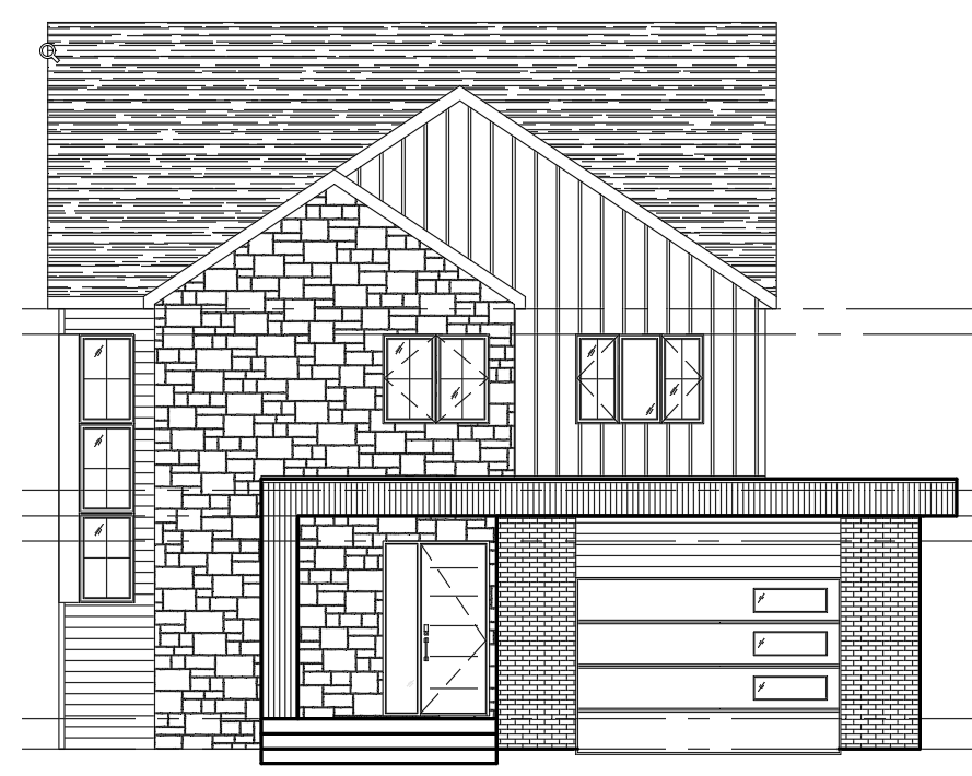exterior shot farmhouse style white and black siding window and door black gray masonry