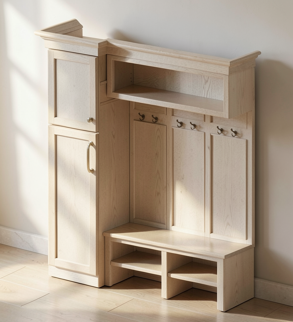 do not change the cabinets in any way preserve the exact cabinet colors materials finishes dimensions door and drawer styles hardware spacing alignment and all geometry exactly as shown do not alter the countertop shape backsplash appliances flooring lighting fixtures or wall structure only remove the construction materials clutter and mess from the scene clean the room and make it look finished and staged add a few simple tasteful home accessories appropriate for the style of the space but do not add or remove any furniture windows or architectural elements maintain the original lighting direction and realism enhance clarity and polish the photo while keeping the cabinetry and room design completely unchanged do not alter the lighting to keep the cabinet colors as they are in the image stage for a laundry room and include a washer dryer