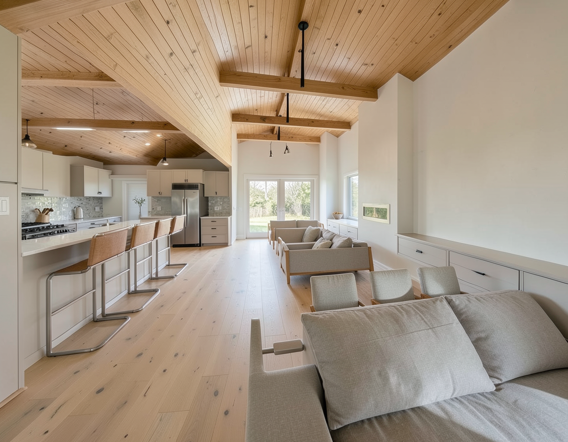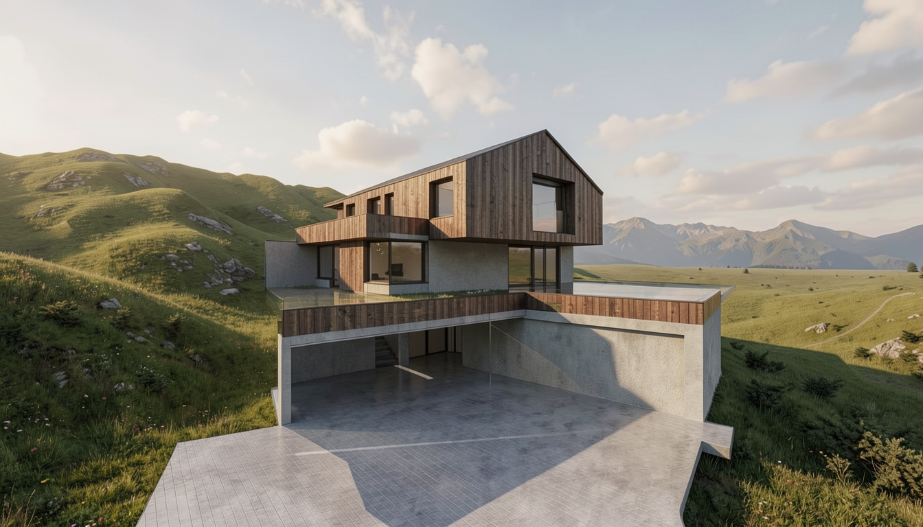 refine this photo realistic rendering by keep everything in this image the same but move the trees outside closer to the window