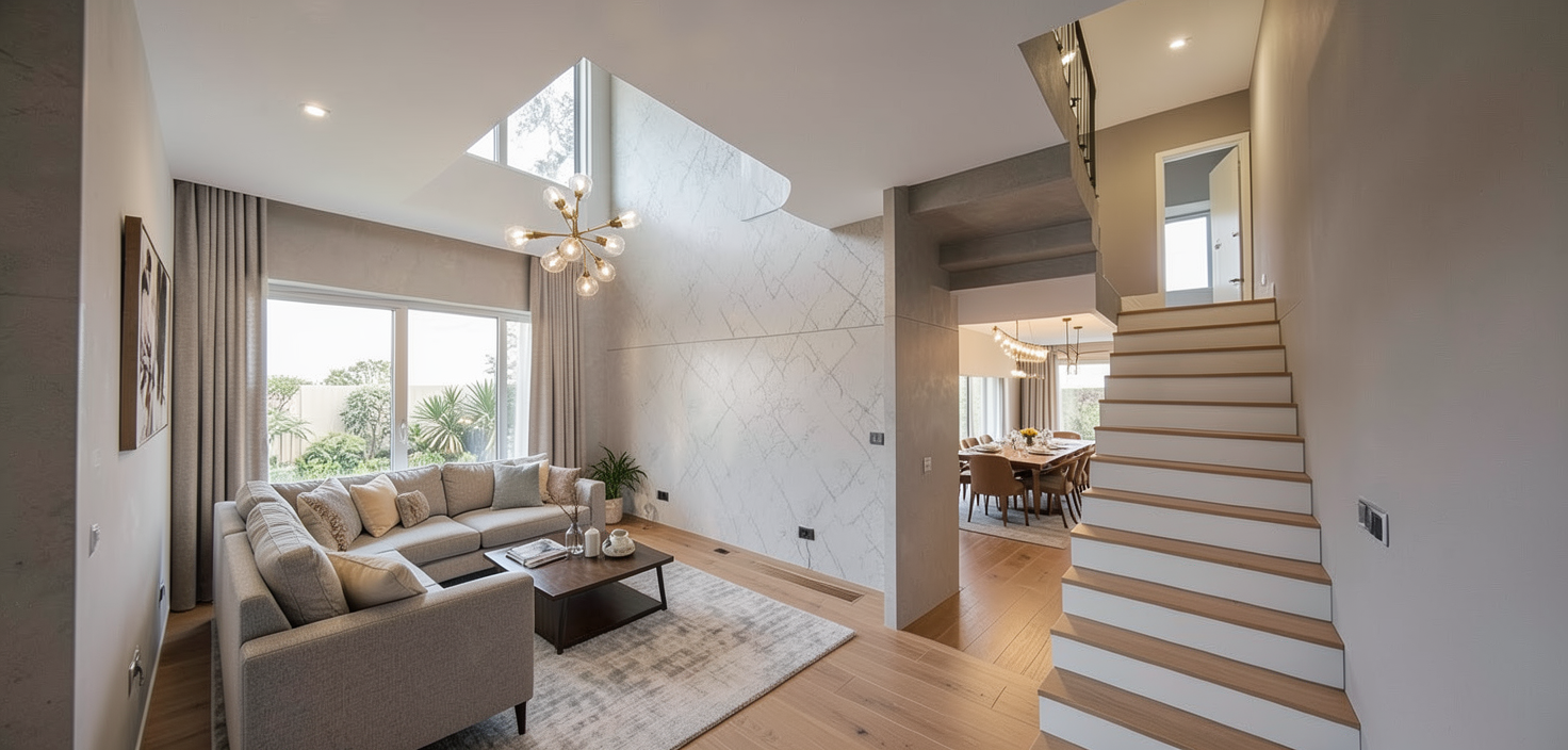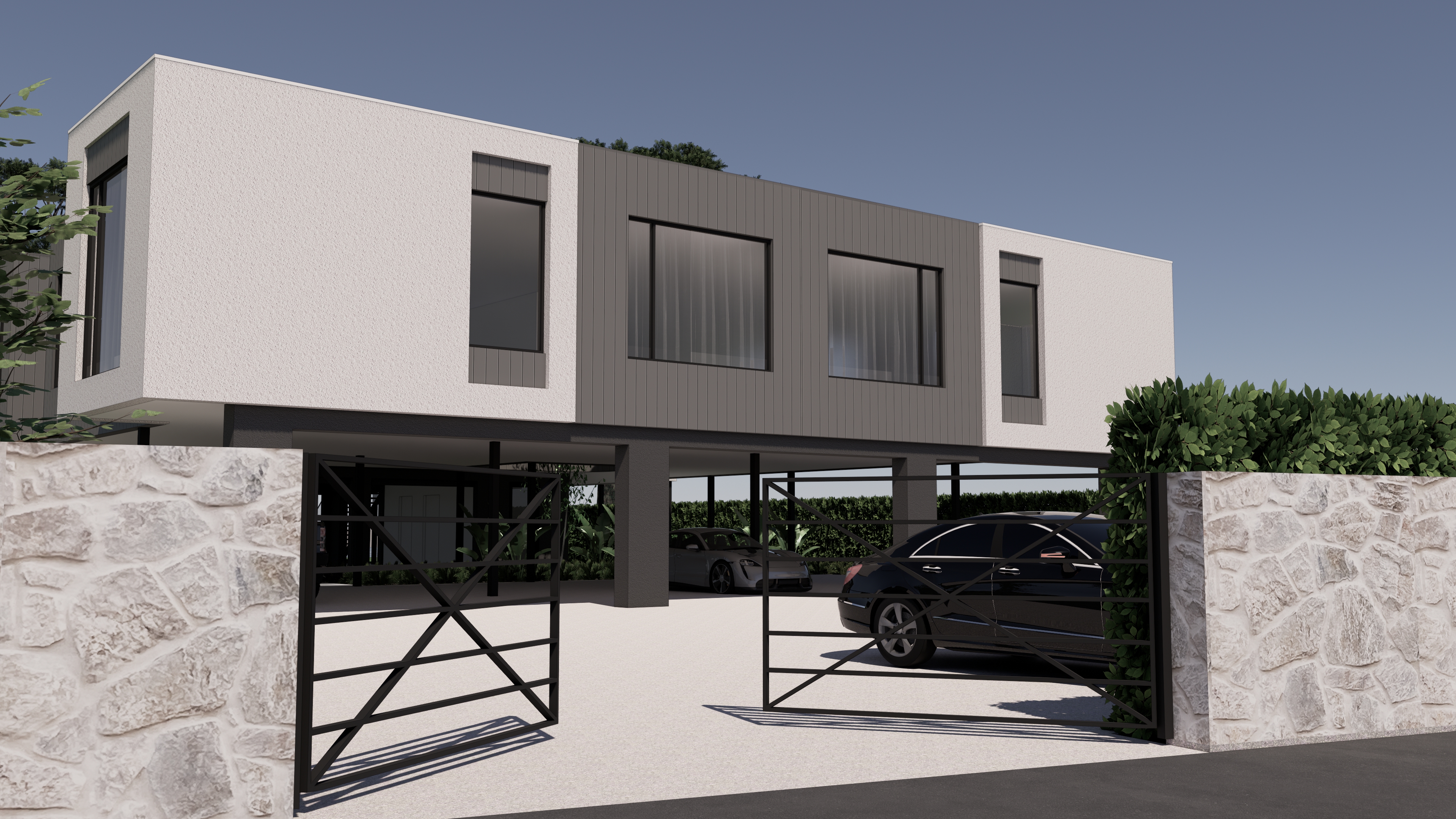 arch synth eucalyptus realism enhancement strict vegetation lock no additions mode hyper real architectural refinement maintain exact building geometry fa ade materials proportions camera angle and landscaping layout exactly as shown in the source image this is a texture and lighting enhancement pass only this is not a redesign pass this is not a landscaping improvement pass strict vegetation preservation rules do not add new gum trees do not duplicate existing trees do not increase tree density do not fill empty sky gaps with foliage do not extend canopy mass do not adjust tree height do not adjust trunk thickness do not reposition any trees do not modify species do not alter the landscaping composition tree quantity must remain identical to the original image tree positions must remain identical to the original image tree scale must remain identical to the original image quantity lock vegetation count must remain exactly the same as the source image layout lock landscaping footprint must remain unchanged enhance existing australian gum trees only improve realism of the existing eucalyptus trees without altering their shape or footprint foliage refinement add natural eucalyptus leaf thinness introduce grey green dusty olive and blue green tonal variation remove saturated artificial greens add subtle subsurface scattering in sunlight create light penetration through canopy gaps break up uniform green masses canopy depth add internal shadow layering increase visible air gaps avoid dense spherical foliage appearance maintain original canopy outline exactly trunk realism add fine peeling bark detail introduce natural tonal layering cream pale grey muted brown add subtle bark fissures maintain trunk width and shape exactly lighting physics refinement improve natural sunlight filtering through leaves add realistic shadow breakup on ground introduce slight atmospheric depth maintain original exposure balance remove cgi smoothness enforce physically accurate material response prohibited actions no new vegetation no background tree additions no density increase no composition change no redesign no scaling of landscape elements strictly refine texture light interaction and micro detail only photographic australian eucalyptus realism no regeneration no replanting no scene alteration