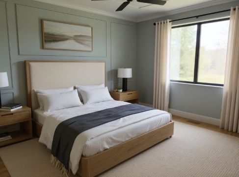 create a hyper realistic render magazine quality make the whole room a light sage color