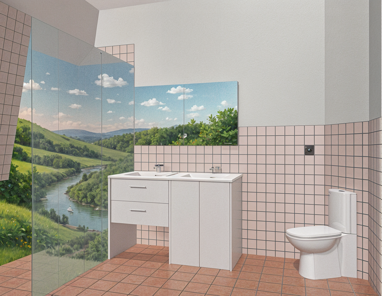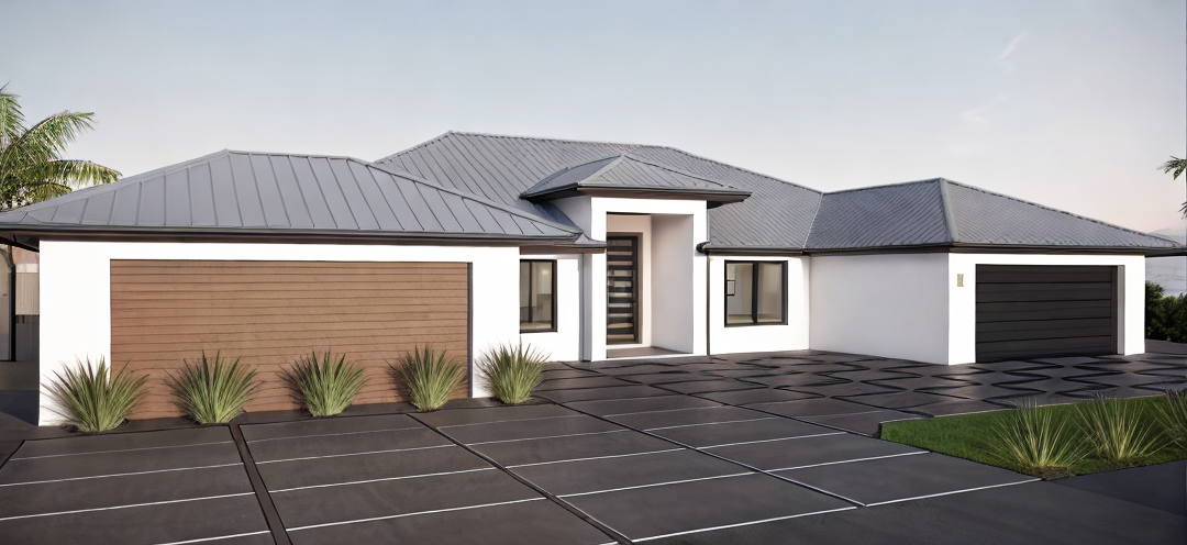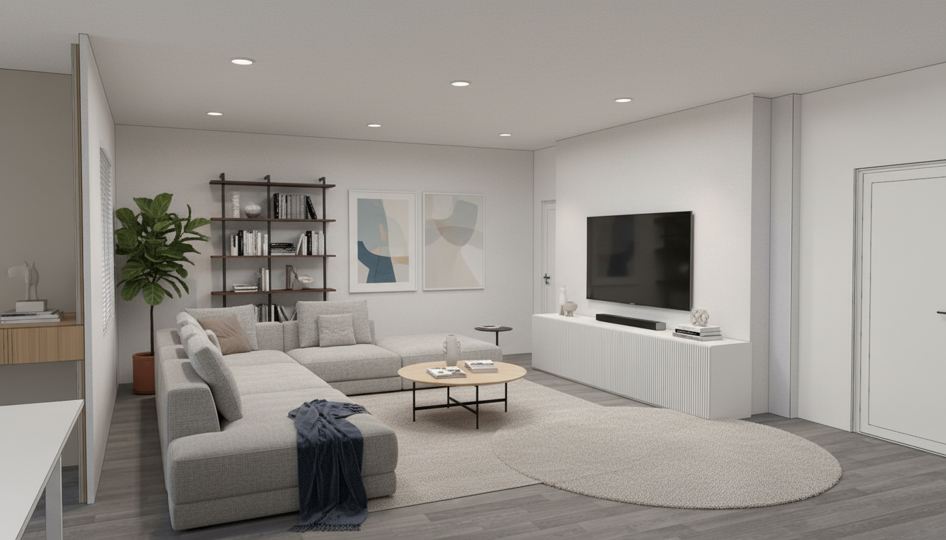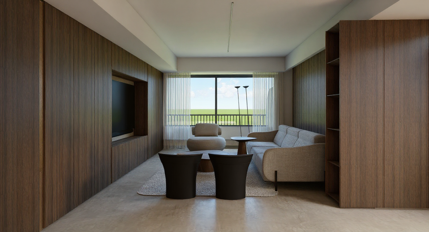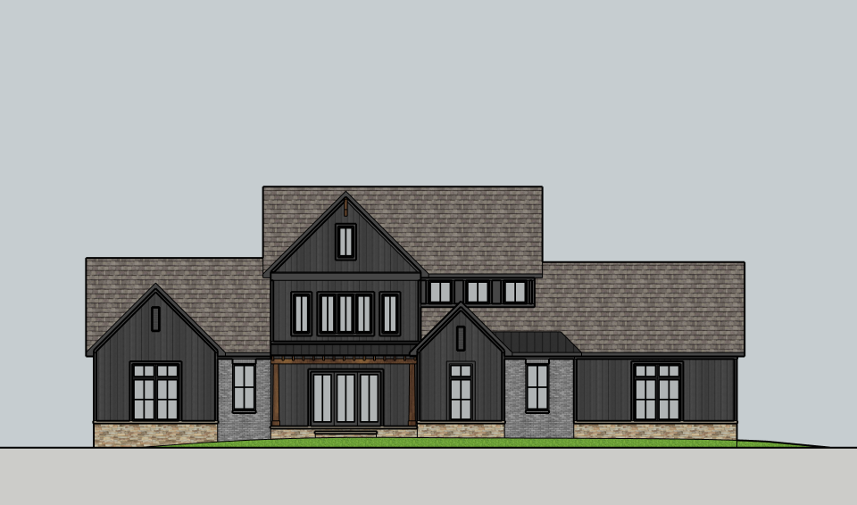realistic render cloudy sky trees in background manicured lawn simple shrubs