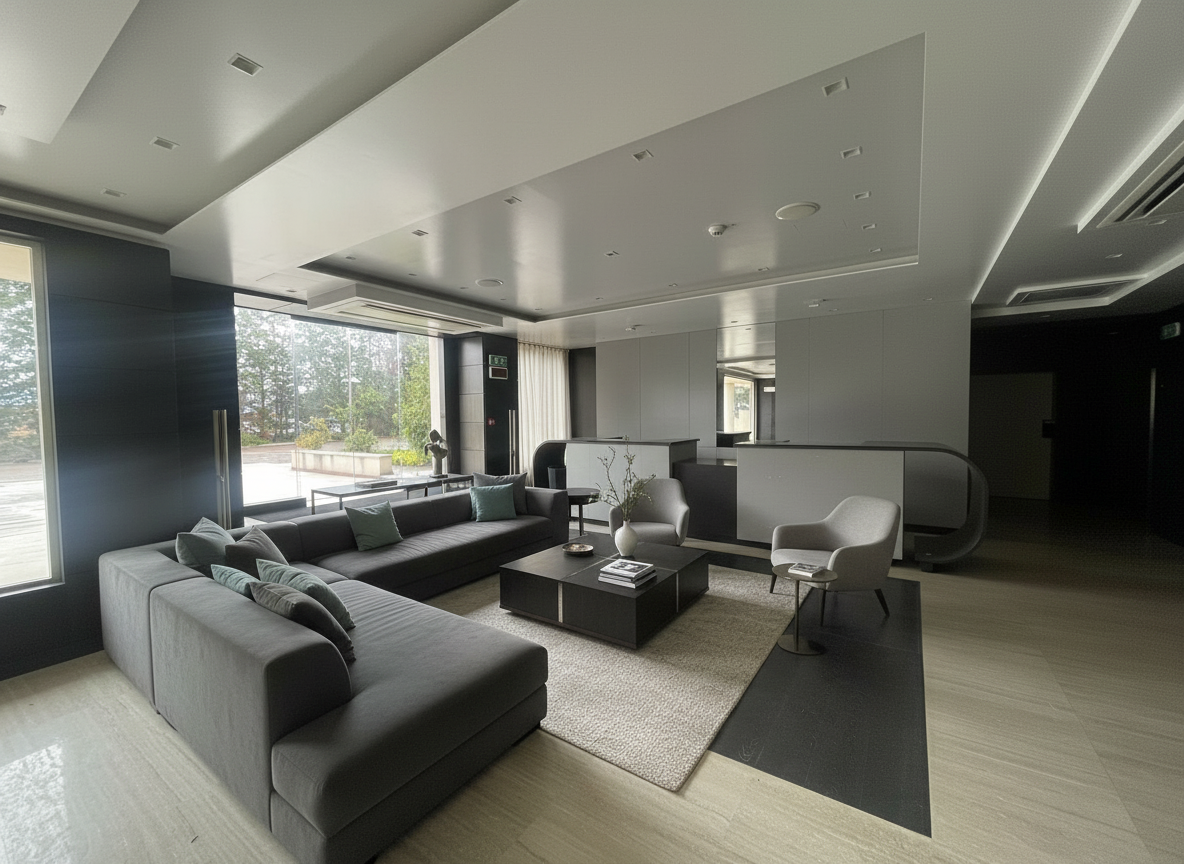 colours to remain accurate as per original given picture wood texture to be subtle drawers and all table top surface in muted light warm earthy light brown solid laminate with subtle light olive undertone matte finish niche in light beige microcement and only bottom till study table in muted light warm earthy light brown solid laminate with subtle light olive undertone matte finish top half of carpentry in solid colour light beige and only bottom till study table in muted light warm earthy light brown solid laminate with subtle light olive undertone matte finish 2 doors full height cabinet in mirror recessed 150mm height skirting ontop ceiling in off white bed headboard in solid colour light beige floor in muted light beige vinyl subtle grains ceiling fan in white walls in off white sunlight coming in from the right side of room edge of wardrobe to be curved