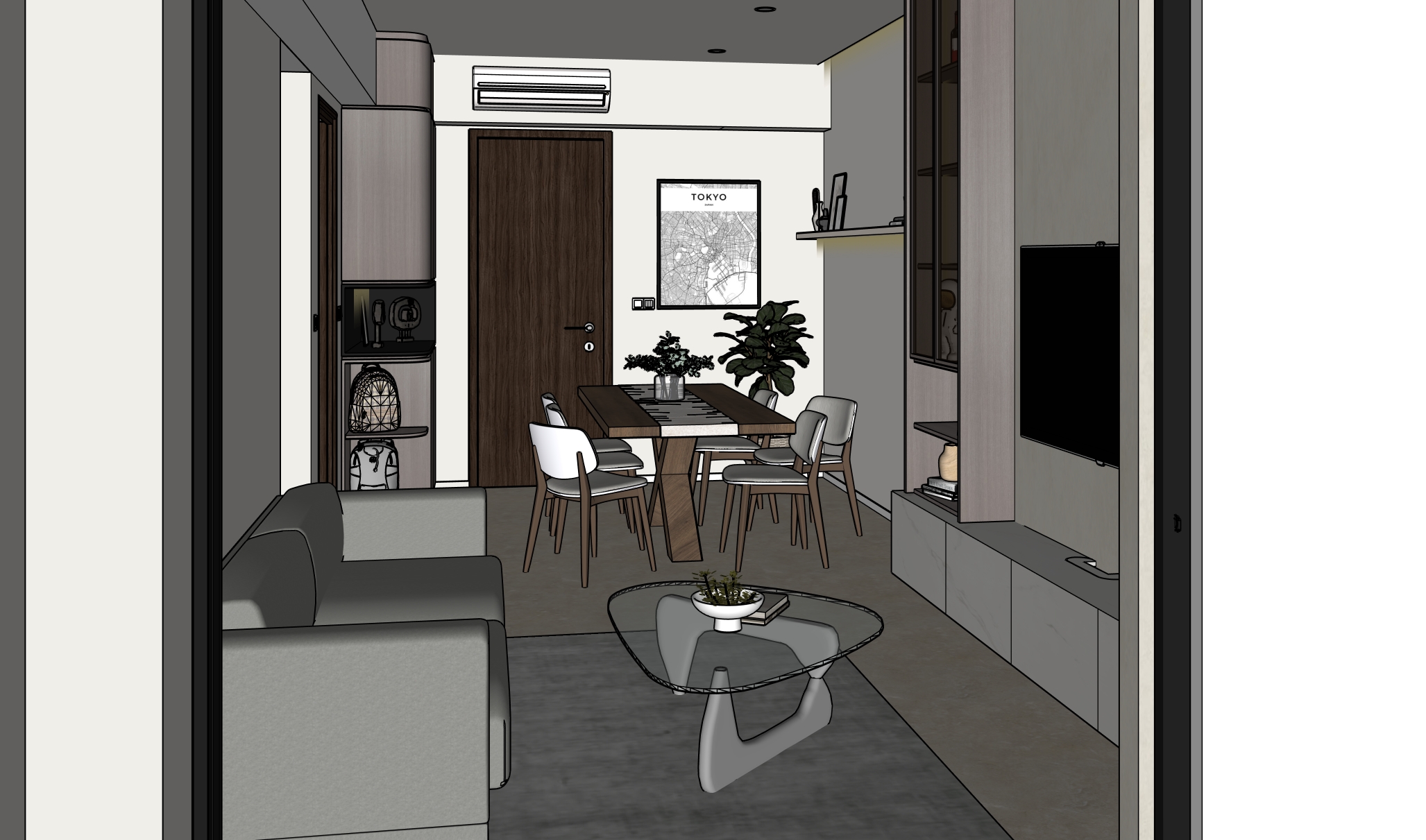 colours and wood texture to remain accurate as per original photo wood texture in subtle grains carpentry in muted mid taupe with subtle wood grains showcase glass cabinet in dark brown tinted glass