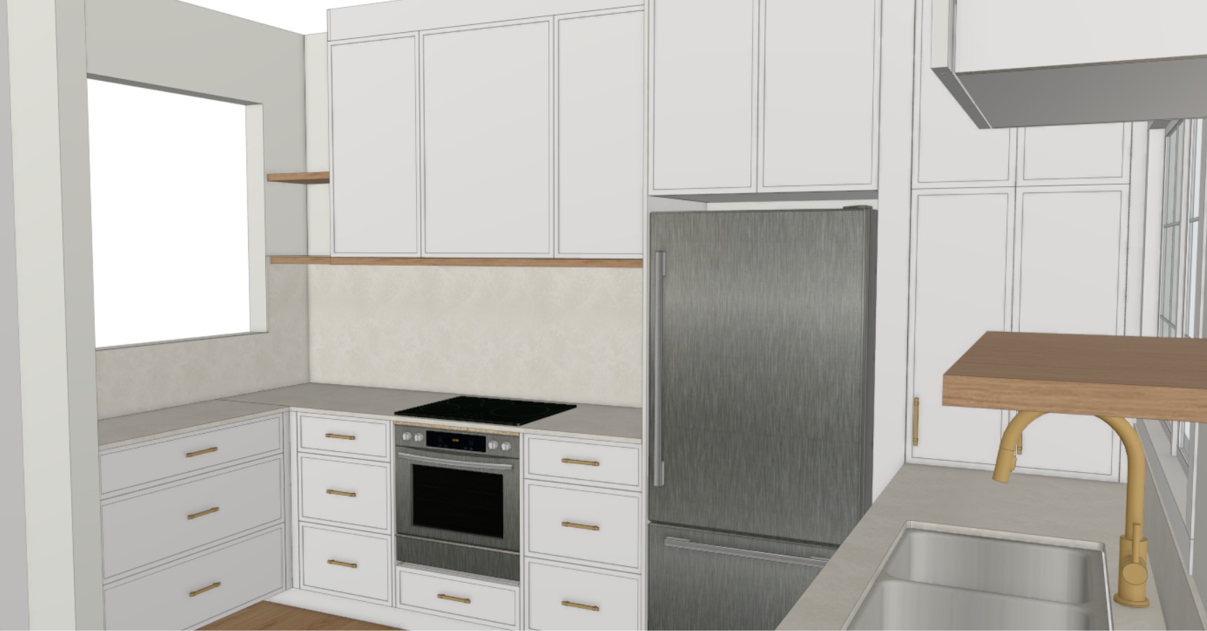 add natural light through sink window and add kitchen decor with someone standing at the sink washing their hands