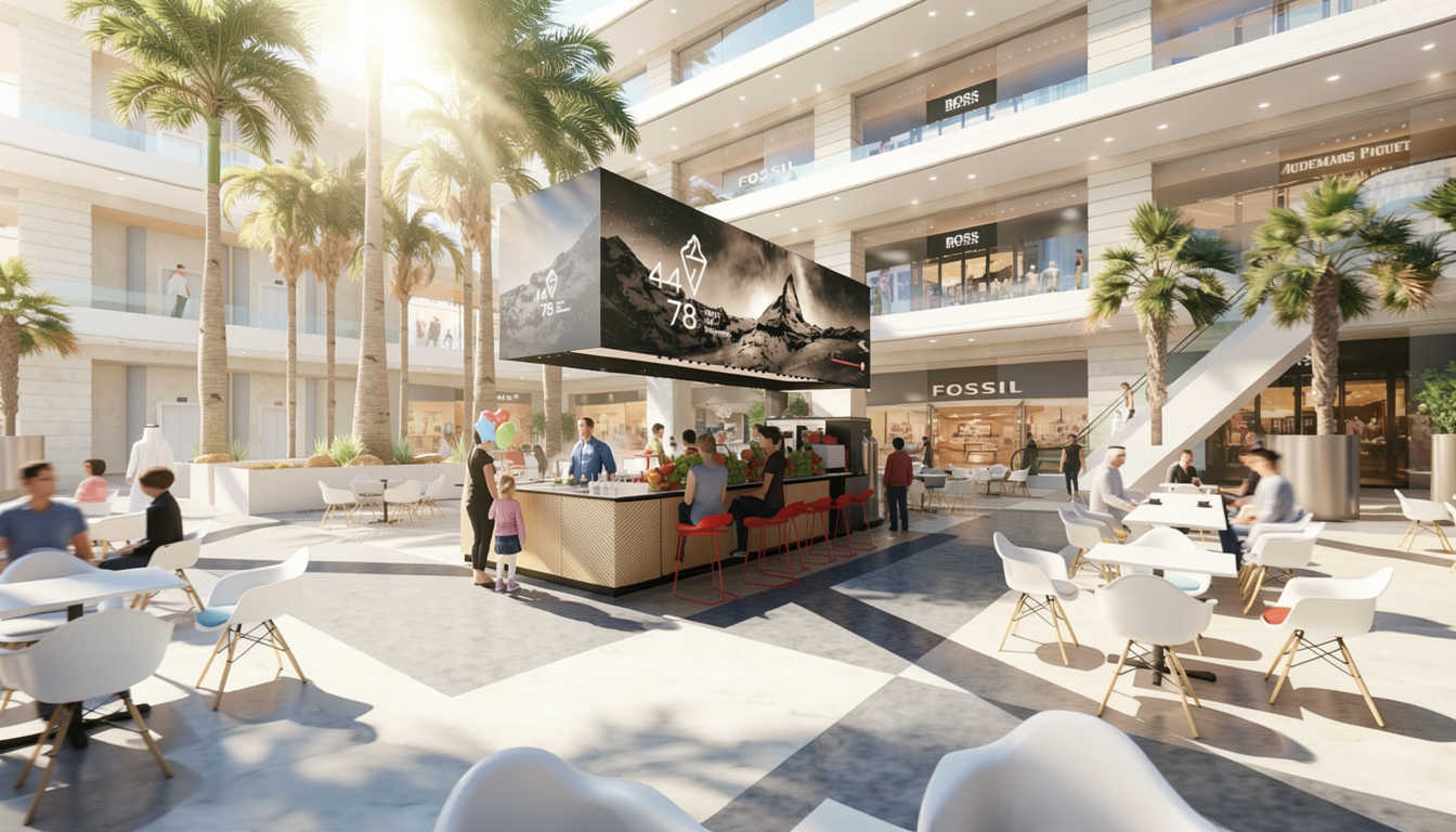 exterior shot promp i want to create a 3 to 9 inch trio of riser for serve fresh sushis it is place on a 36 large x 60 long x 32 hign table with white tablecloth it s in a jet set lodge for f1 run in mid day the risers look is inspire by the 2 moodboard pages with bauhaus style
