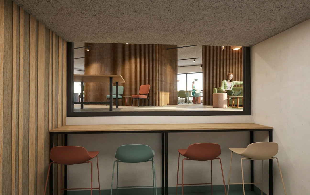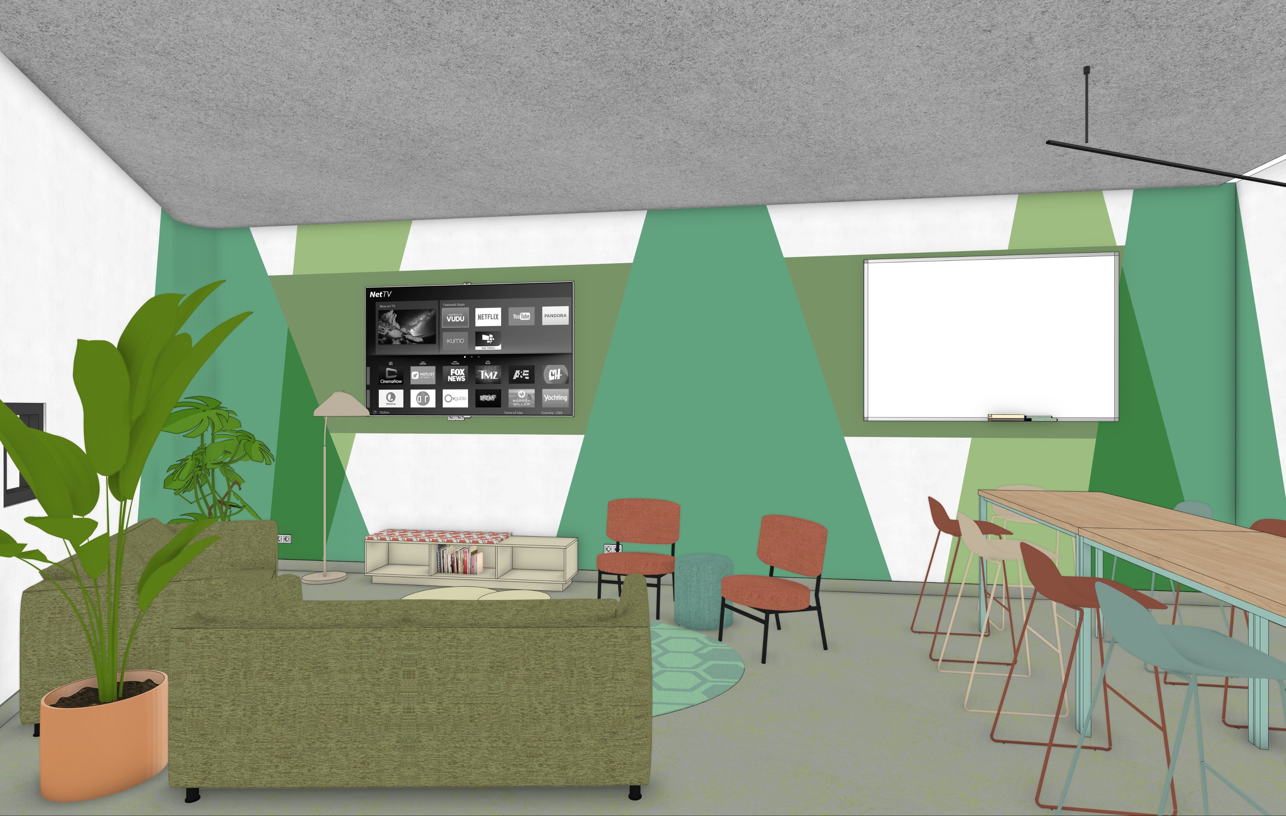 maintain all colors natural daylight turn the lights on table tops are h3170 from egger blue table frame is ral6034 cabinet is sage green from egger