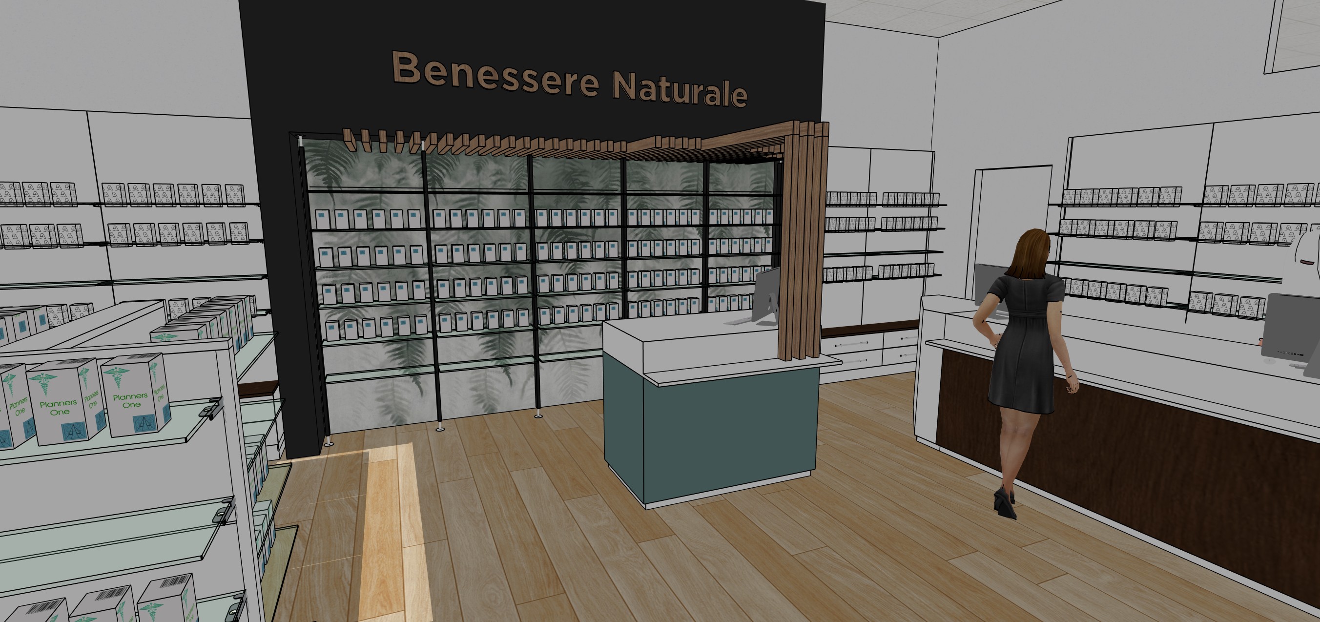 fai soffitto con illuminazione a quadrotti sparsi posizionati in maniera regolare mantieni colori originali fai una vista bella luminosa