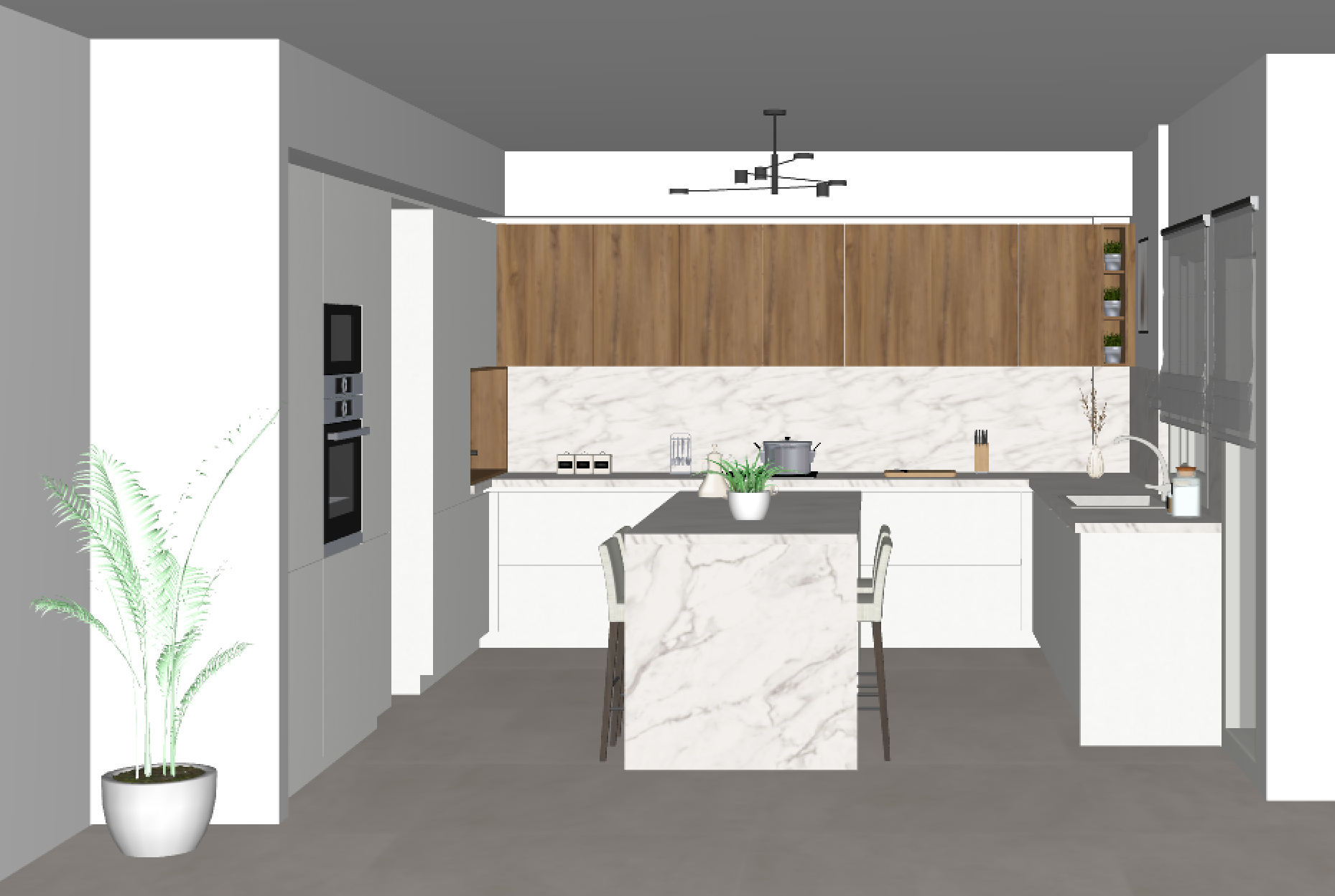 just a 3d render add some lights keep colours as it is show view from the windows remove the refrigerator
