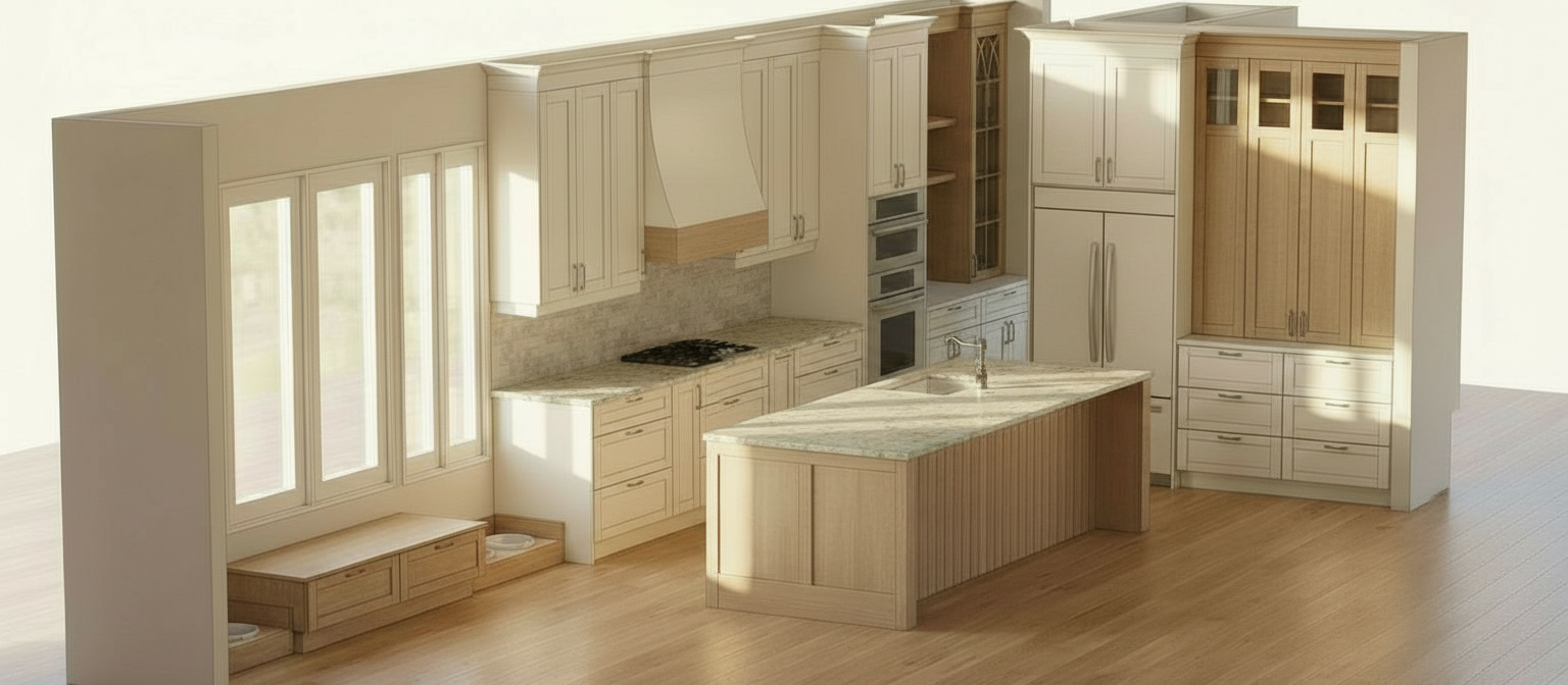 can you make the wood cabinets to the right of the refrigerator and the dog station under the window the same white colour as the rest of the cabinets