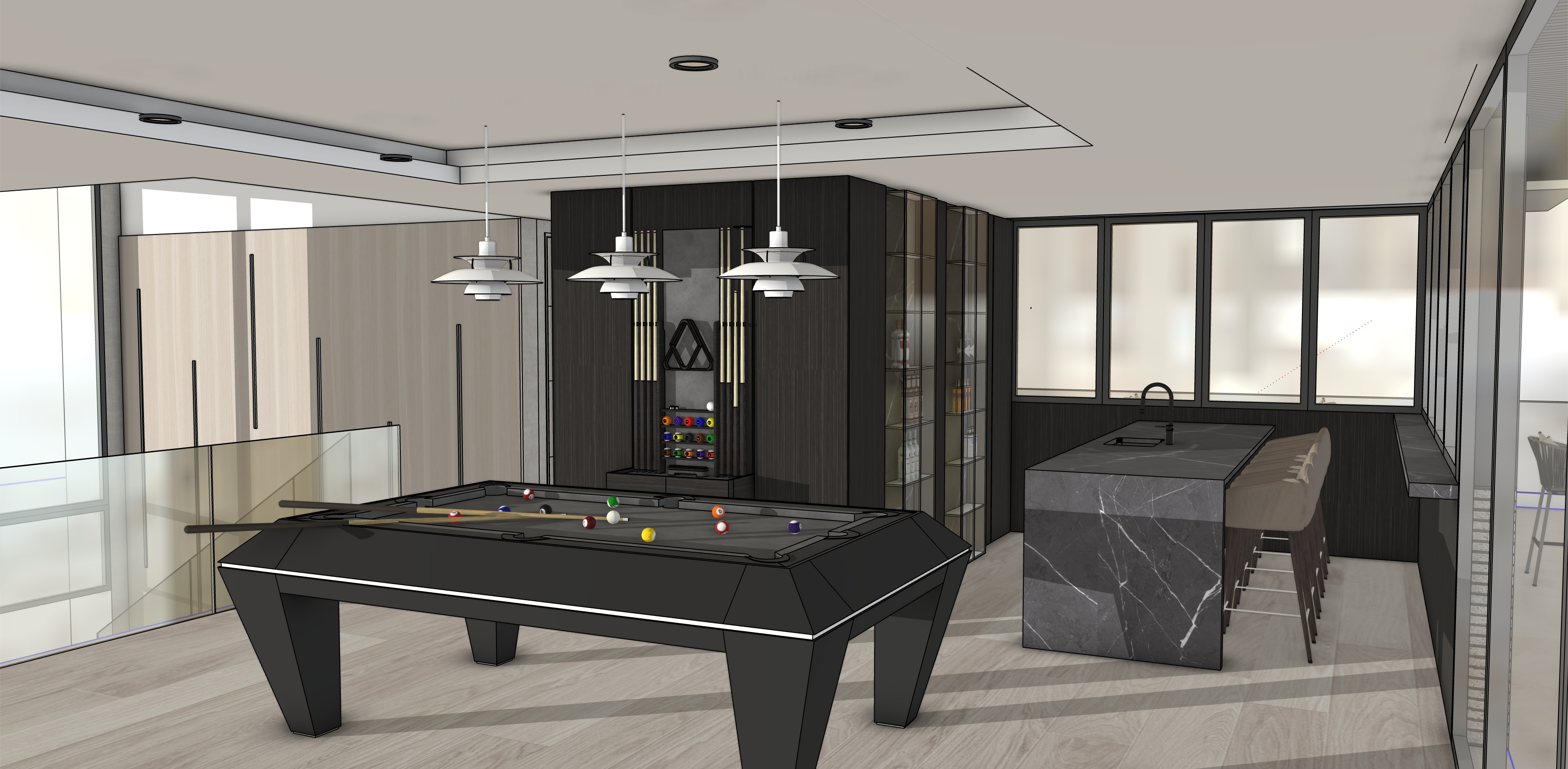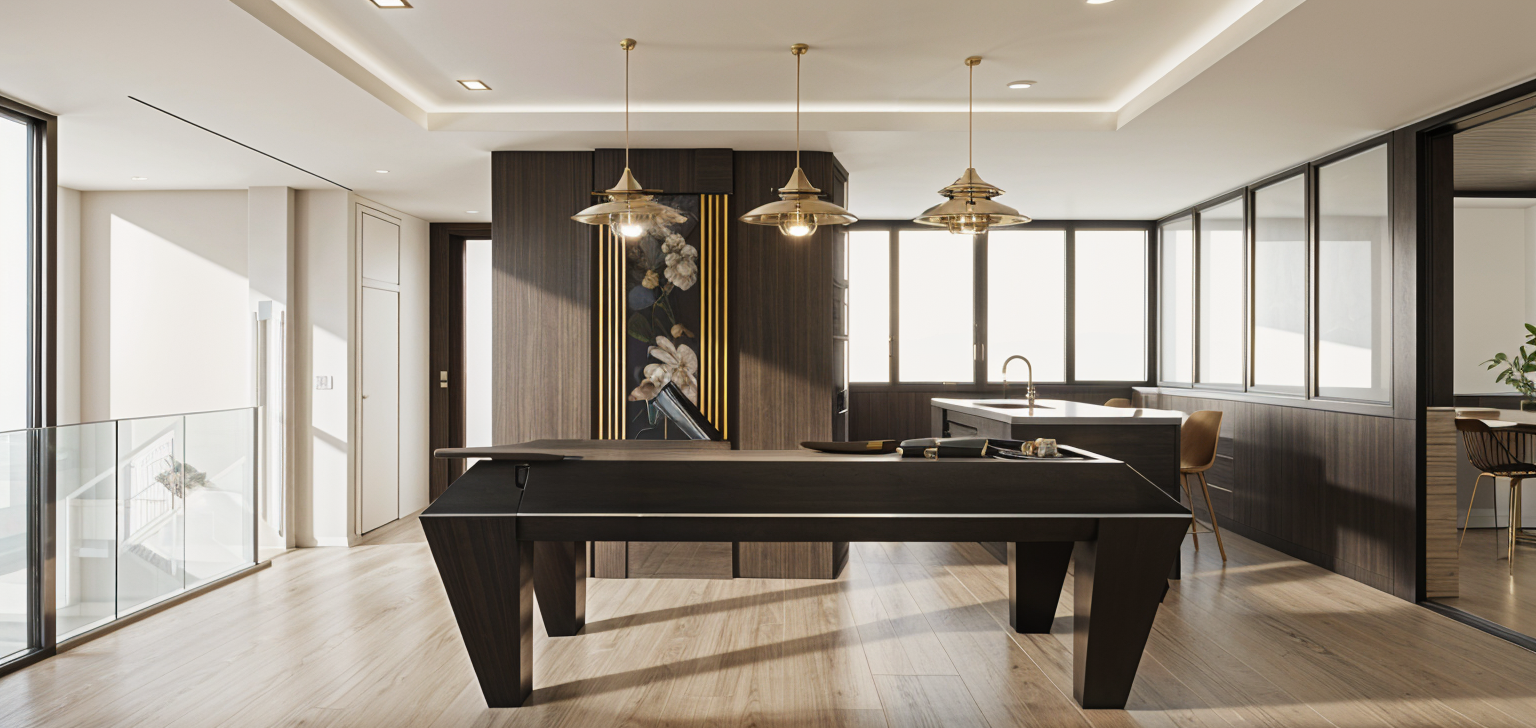 photorealistic interior render of lounge space on the third floor minimal design with natural oak on the floors floor to ceiling windows soft diffuse daylight 3000k led ceiling realistic materials and textures high depth of field and cinematic lighting ultra detailed finish