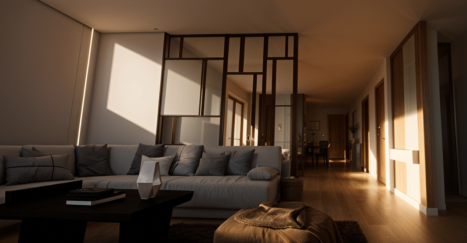 can you edit a minimalist black feature desk lamp pendant from ceiling to the right and make the floor lamp black matt