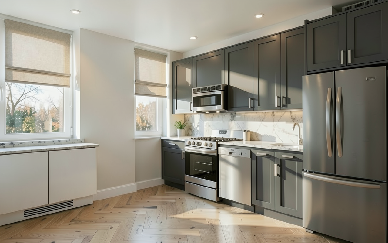 remove herringbone pattern from flooring and replace with a light oak straight plank design