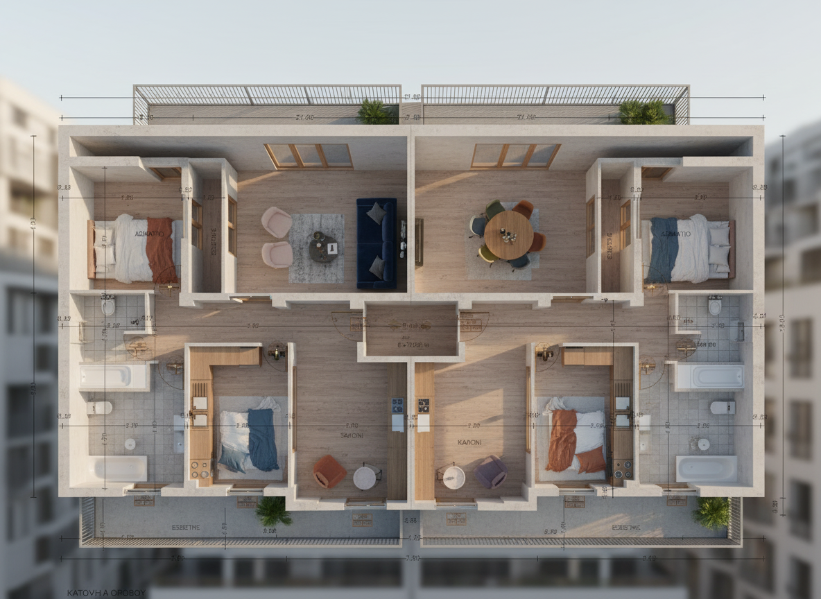 minimalism interior from the top these are two apartments with two bedrooms one toilet one kitchen and one living room architecture