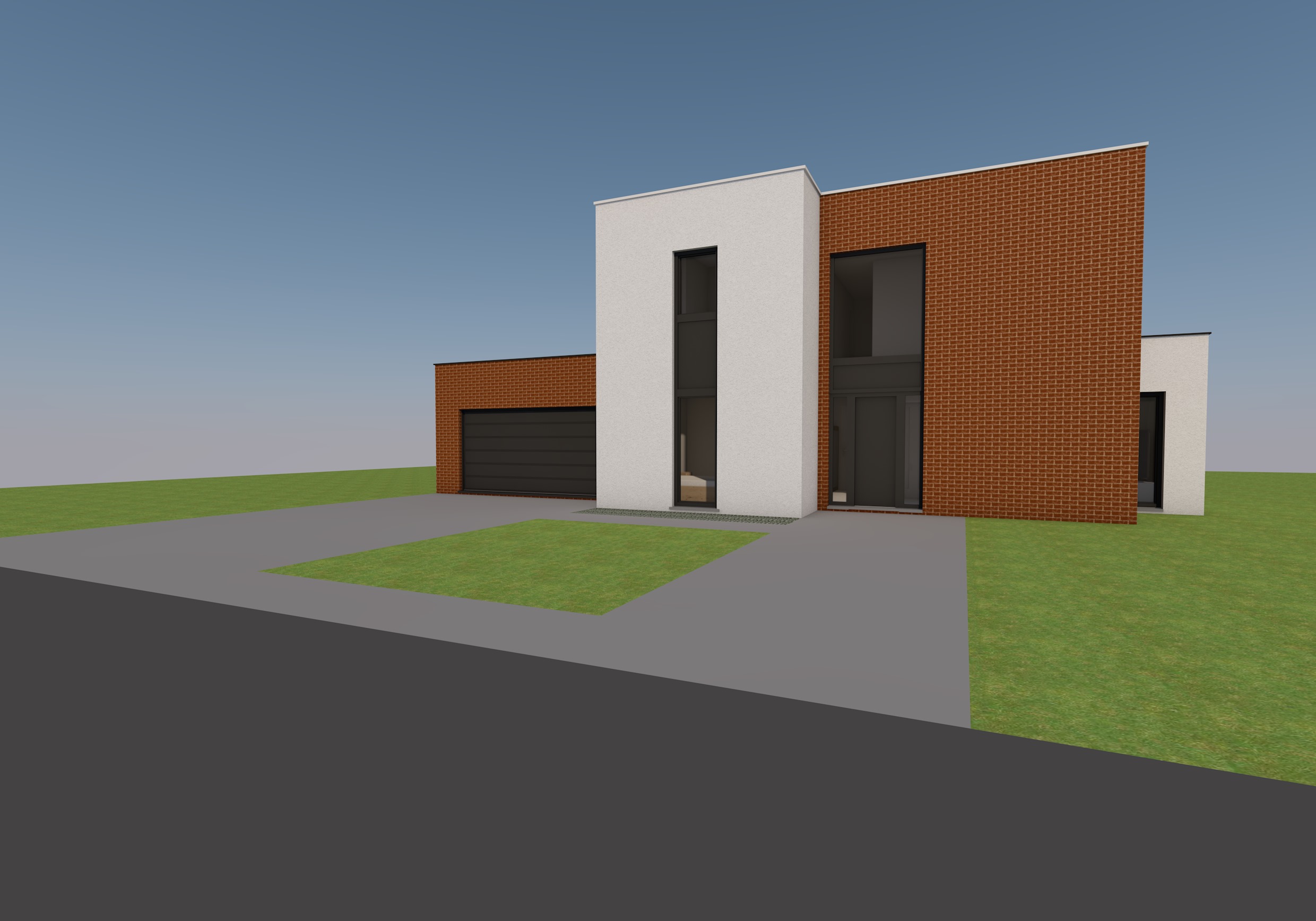 mettez l image dans un contexte rural avec des arbres arbustes et fleurs la brique doit tre grise fonc e et le blanc du cr pis blanc ajoutez une photo ainsi qu une personne saluant
