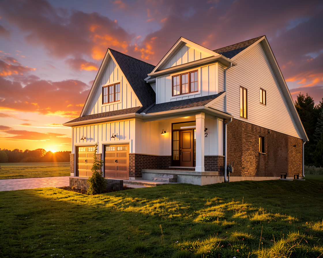 transform this architectural model into three clearly separated standalone modern homes critical these are not attached units each building must have visible physical space between it and the next ensure clear gaps between all structures architecture maintain modern design but ensure each home reads as an independent structure no shared walls no continuous facades spacing increase distance between buildings slightly for visual clarity add clear separation using space not just materials entry site each home must have its own front walkway and entry path separate landscaping zones for each home break up all planting beds so they do not connect across homes ground layout add subtle grading or spacing so buildings don t visually merge ensure driveways or access feel independent camera slightly lower and more front facing angle less top down avoid compressing the buildings together style keep materials simple and neutral for now important focus on spatial clarity and separation first realism and styling come later