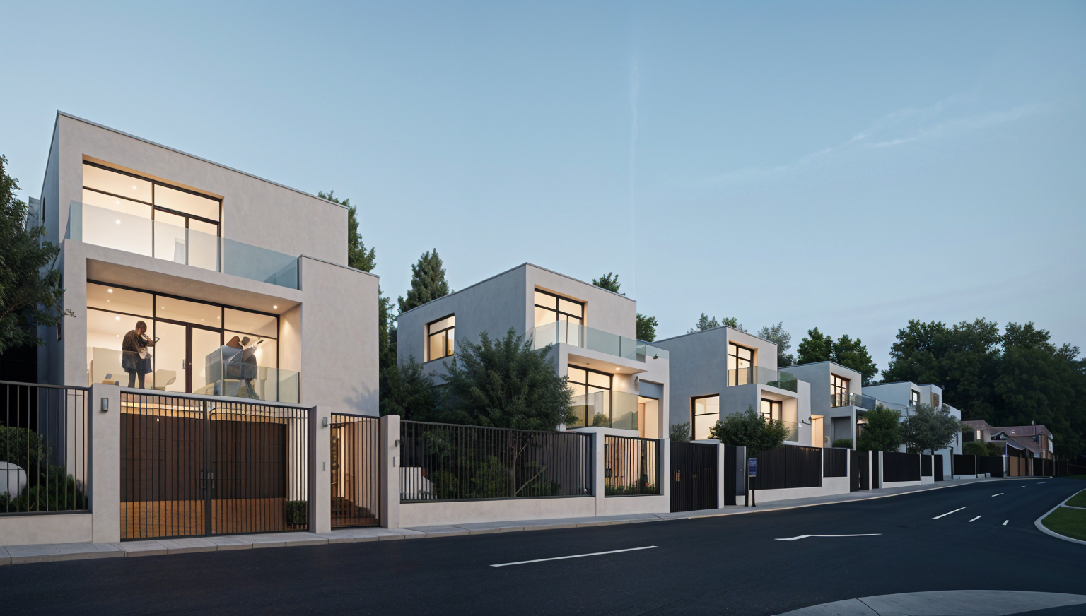 make it look photorealistic keep original colors and finishes make it look like a workplace for 4 people add 2 sitting people by the desks add the view of a plain field behind the windows cieling is armstrong plates keep the color of the walls keep the structure of the windows in the back wall make it look like a regular 4 desks combination