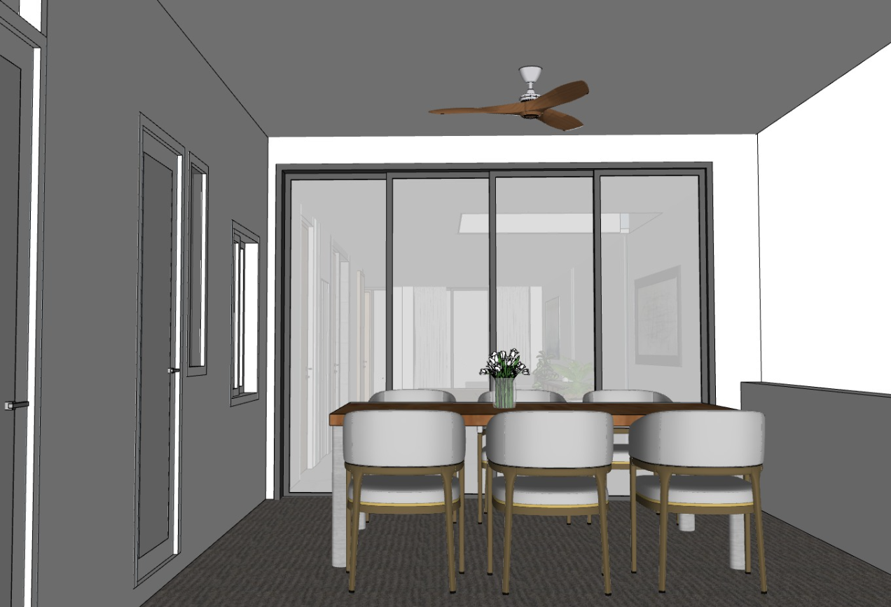 right void can see outdoor the door is white the floor is siment dark grey