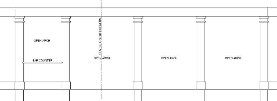 take this interior elevation of a grand hallway and show a perspective looking at it from about 15 feet back show a two story great room in the background through the arch with windows on the back wall