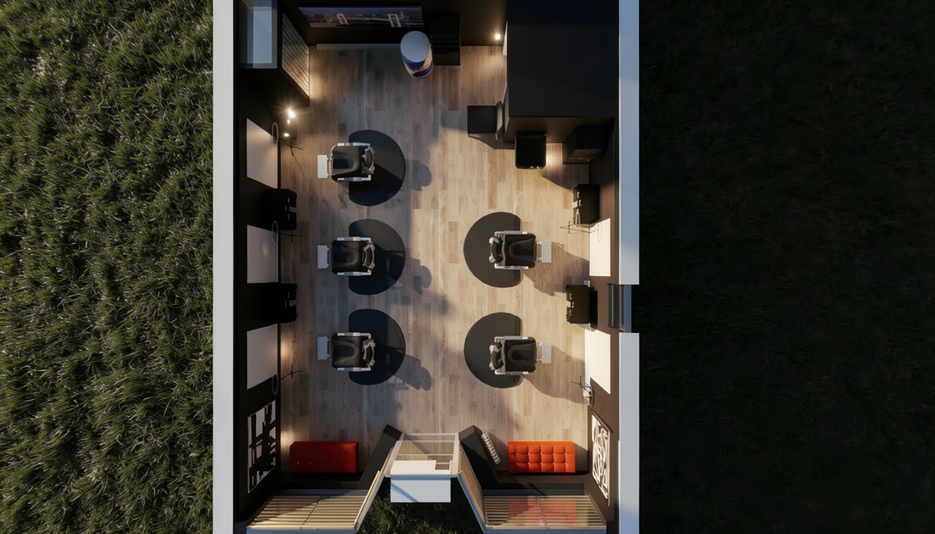 seven global style lock do not change core design language ultra photorealistic luxury hospitality interior of seven restaurant the visual language combines dramatic botanical garden atmosphere with theatrical heaven and hell elements the architecture must always feel rich lush layered and immersive key interior palette deep emerald green burgundy velvet brushed brass metals dark natural wood flooring black granite architectural accents natural marble tabletops lush botanical greenery furniture language emerald velvet banquettes with deep tufting burgundy velvet dining chairs brushed brass table edges polished dark marble table surfaces botanical identity of the space dense cascading ivy vines and hanging white wisteria flowers no other flowers are allowed except white wisteria and accent red roses when used in dramatic trellis areas signature ceiling lighting cloud storm installation the ceiling is white with large recessed architectural niches inside these ceiling niches are sculptural cloud lighting installations made from dense cotton like fiber material the clouds form irregular organic cumulonimbus storm shapes the cloud mass appears fluffy layered and semi translucent hidden light sources are embedded inside the cloud structure causing the clouds to glow softly from within the illumination creates natural gradients of white and grey tones across the cloud surface inside the cloud volume subtle lightning flashes appear as diffused white light streaks glowing through the fiber material these lightning effects resemble distant thunderstorm lightning glowing inside real clouds light softly diffuses through the cloud edges creating a halo glow around the ceiling opening cascade botanical greenery consisting of ivy vines and hanging white wisteria scene description ultra photorealistic architectural interior photography of a dramatic botanical dining corner the camera angle must match the reference image composition left wall a large tropical mural depicting a lush jungle scene with waterfalls parrots and a peacock surrounded by dense foliage foreground seating emerald green velvet banquette with deep tufting wrapping the corner dining tables square marble tables with polished dark stone surfaces and brushed brass edge details dining chairs rich burgundy velvet chairs with slim brass legs center feature a dramatic botanical trellis pavilion constructed from dark metal lattice the trellis is densely covered with ivy vines and white wisteria clusters of deep red roses grow through the trellis creating strong visual contrast behind the trellis a classical grey stone angel statue with a sad contemplative expression partially hidden in shadow architectural portal a monumental arched doorway made from polished black granite stone resembling a mysterious gate of hell the granite arch is outlined with thin red neon lighting creating a subtle crimson glow the door panel is brushed brass with soft metallic reflections right side tall decorative indoor plant in a white classical planter floor dark natural wood parquet flooring with visible grain patterns lighting atmosphere lighting composition combines soft daylight glow from the cloud ceiling installation warm hospitality ambient lighting red neon accent glow from the granite portal material realism materials must appear extremely realistic velvet fabric fibers natural marble veins brushed brass reflections black granite texture natural wood floor grain glass reflections botanical leaf translucency professional architectural photography full frame camera simulation 24 35mm architectural lens balanced perspective strong spatial depth natural exposure with soft highlights and shadows no cgi appearance super render boost block ultra photorealistic architectural photography global illumination physically accurate lighting high dynamic range reflections micro material textures cinematic depth of field realistic velvet fiber shading polished marble reflections brushed brass specular highlights natural plant translucency subsurface scattering in leaves high end hospitality interior photography magazine quality rendering hospitality amazing photography extremely realistic materials cinematic depth