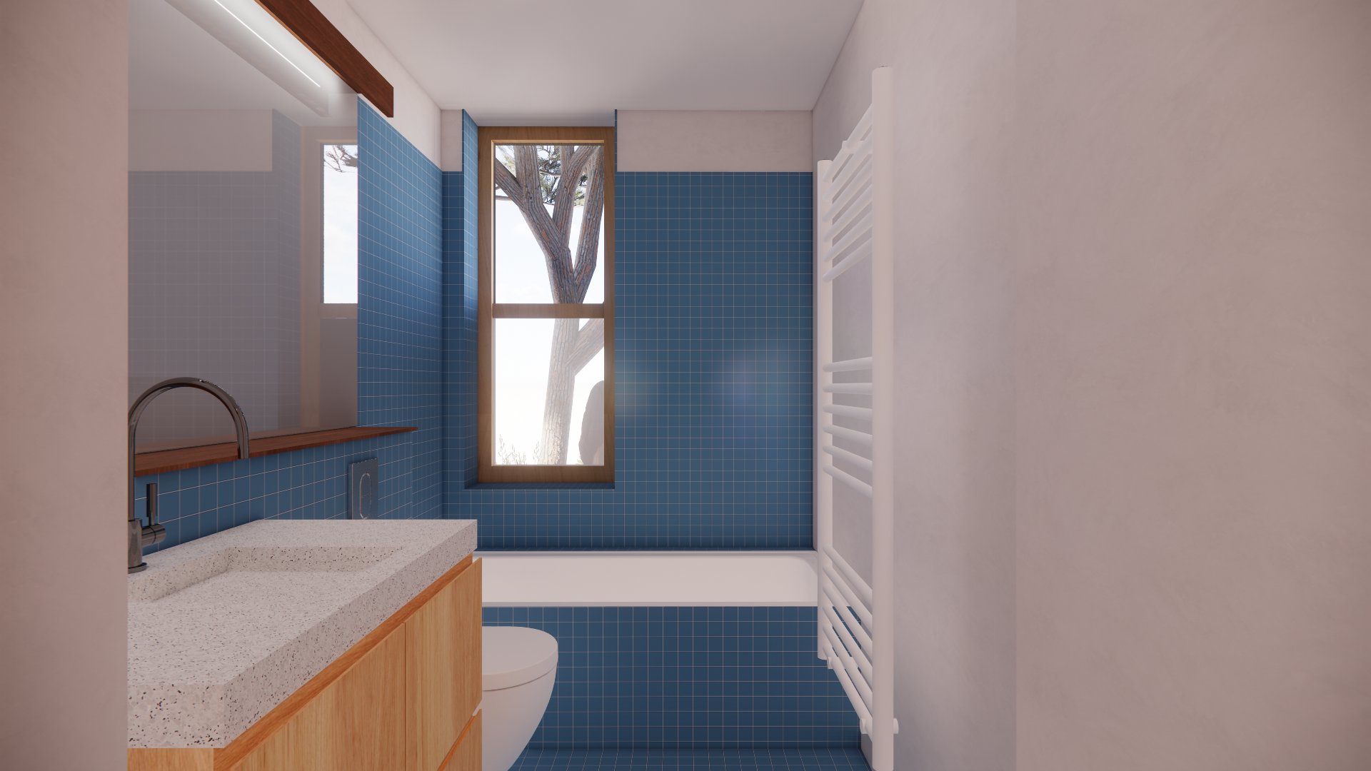 realistic photographic style keep the vue the volume the geometric and the materials and colors enhance the materials the glass reflection the light super high quality render