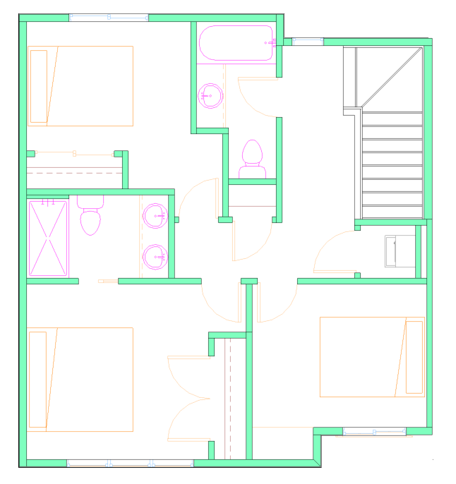 convert this floor plan into a realistic isometric 3d view of a full house show the space from an elevated angle with furniture walls and details visible convert this floor plan into a realistic isometric 3d view of a full house show the space from an elevated angle with furniture walls and details visible use the same furniture as shows on the plan do not change the orientation of the floorplan make the beds white and the floor a light wood change the stairs as well use the same furniture as shows on the plan do not change the orientation of the floorplan