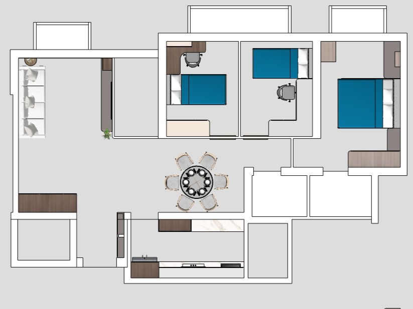 convert this floor plan into a realistic isometric 3d view of a full house show the space from an elevated angle with furniture walls and details visible transform this sketchup model snapshot into a highly realistic architectural interior rendering strictly preserve the original layout carpentry design wall positions furniture placement and camera angle from the sketchup model do not change the architecture only enhance materials lighting and realism the flooring throughout the house should be large format 800mm x 800mm white marble tiles with subtle grey veining polished finish arranged in a clean grid tile layout with thin grout lines clearly showing the 800x800 tile proportion the design theme should be bright modern luxury with a light and elegant atmosphere use white warm grey and champagne tones premium finishes clean modern carpentry and refined detailing add soft cove lighting warm ambient lighting and natural daylight entering from windows to create a bright airy luxurious interior materials should appear high end and realistic smooth painted walls elegant marble surfaces subtle metallic trims and high quality finishes produce a photorealistic rendering similar to v ray or corona architectural visualization with accurate lighting natural shadows and reflections on the polished marble floor use the same furniture as shows on the plan do not change the orientation of the floorplan