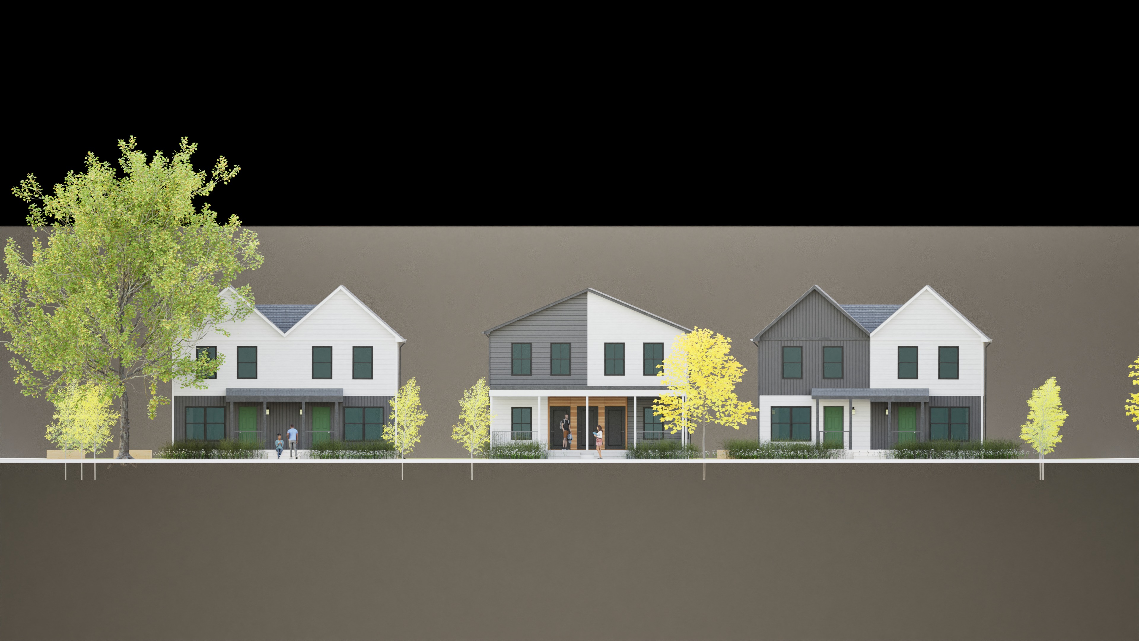 can you remove the house on the right side of the image add a blue sky with some clouds add some trees that are 50 opacity where the house used to be