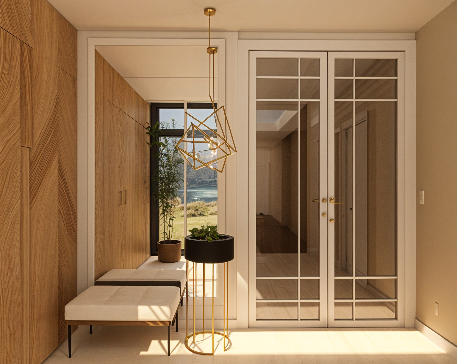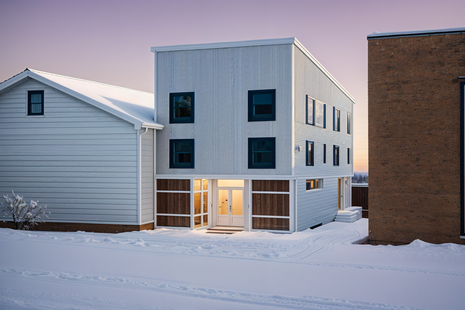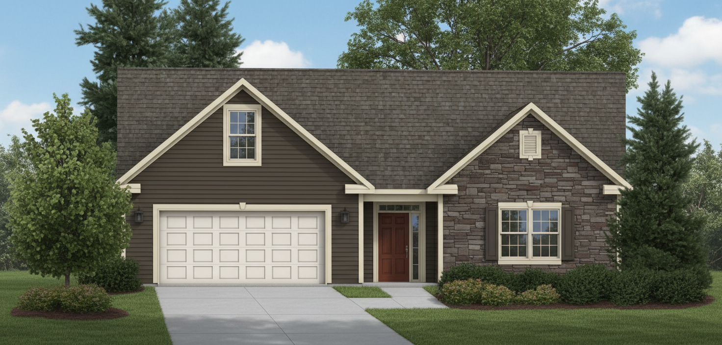 bronze siding with light trim black front door