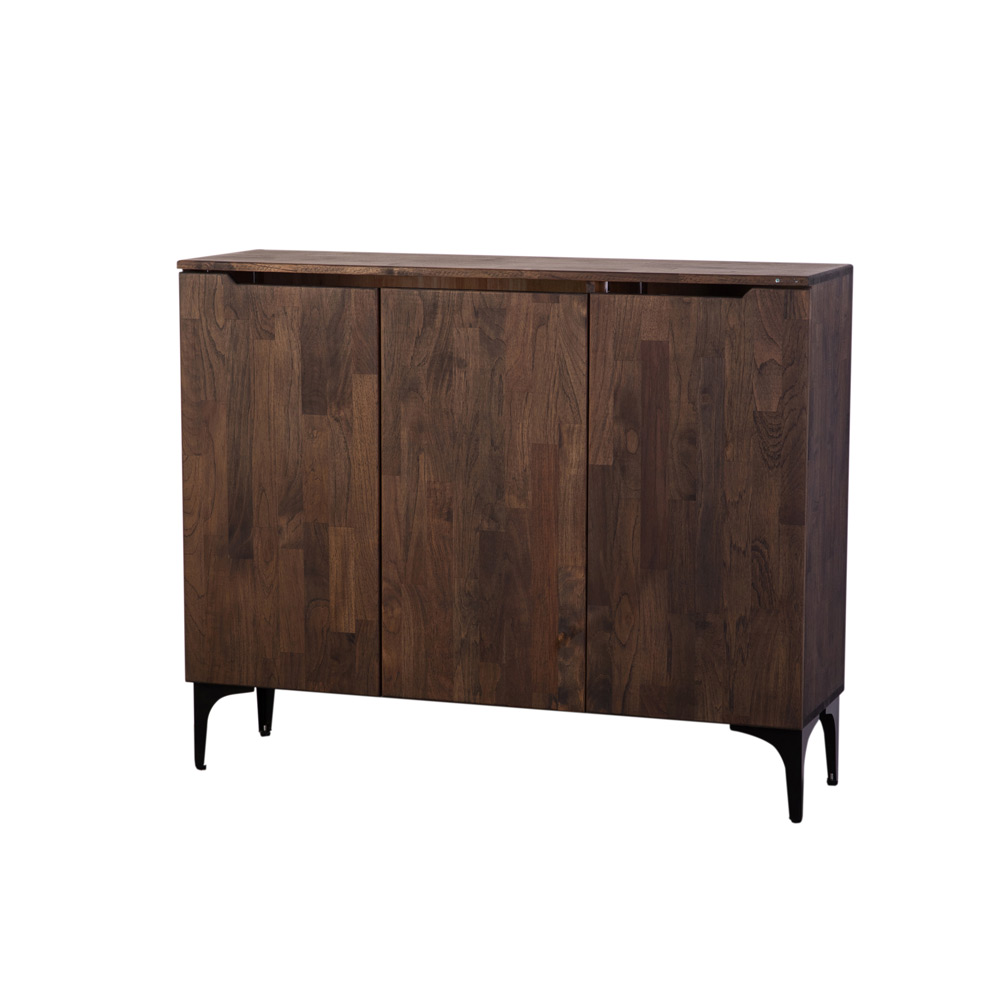 add a modern elegant interior background that complements the dark solid wood shoe cabinet use a warm neutral wall color such as light beige cream or soft grey to create contrast and highlight the cabinet s wood texture the flooring can be light toned wood or matte grey cement for a clean and sophisticated look allow gentle natural light to enter from one side to create soft shadows and a cozy ambiance place a few stylish decorations beside the shoe cabinet for example a tall indoor plant in a ceramic pot a minimal floor lamp or a small rug you can also add simple wall decor above the cabinet such as a framed artwork or round mirror to balance the composition and create a welcoming entryway atmosphere do not alter the design color or angle of the shoe cabinet itself maintain realistic lighting proportions and shadow consistency