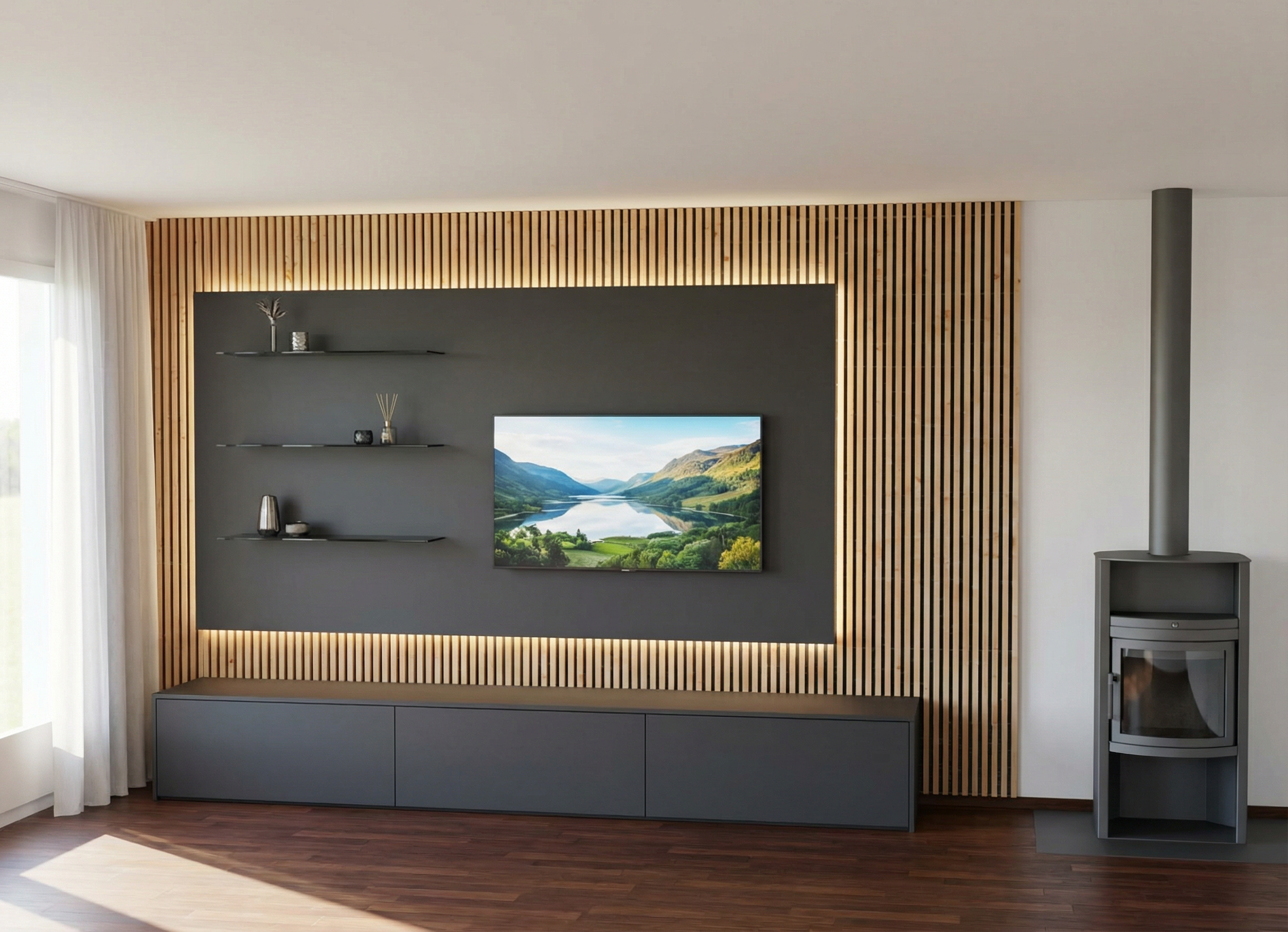 add wooden panel on the wall