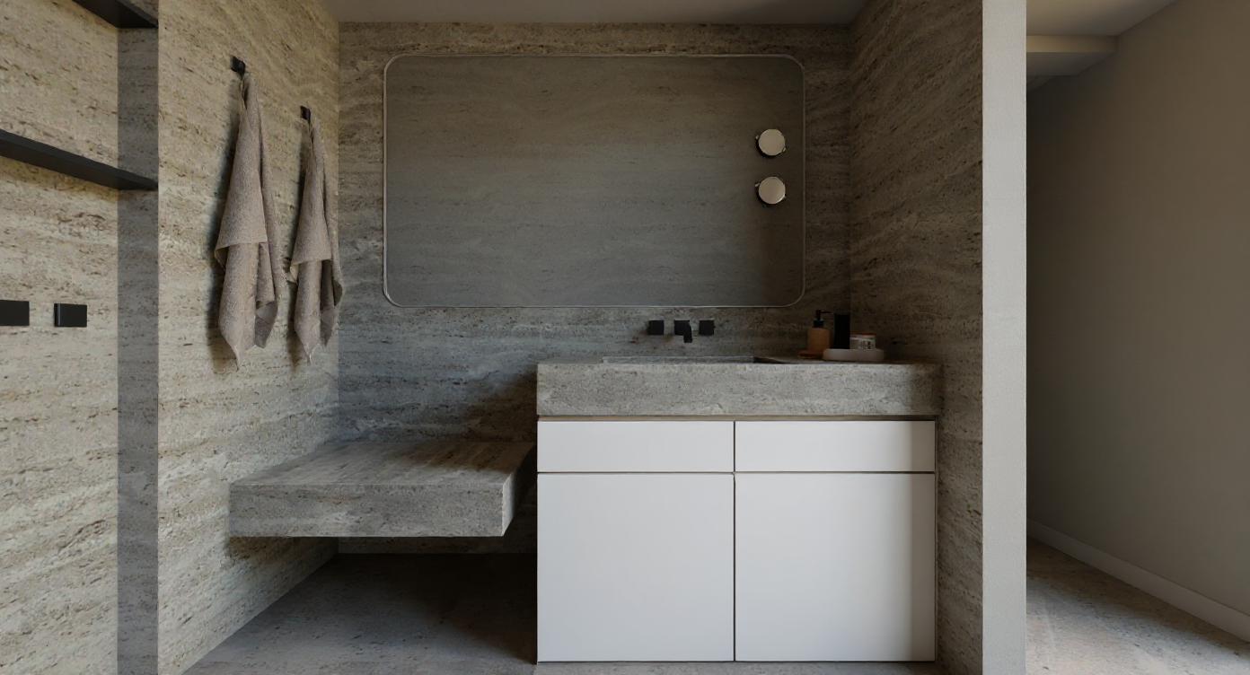 a modern villa with classic architectural elements featuring large windows with dark frames and white walls the roof has a neutral gray tone the surrounding balustrades are a pristine white add greenery with lush vibrant green plants around the entrance use a clear blue sky for a serene atmosphere the lighting is soft casting gentle shadows for a warm inviting feel architecture