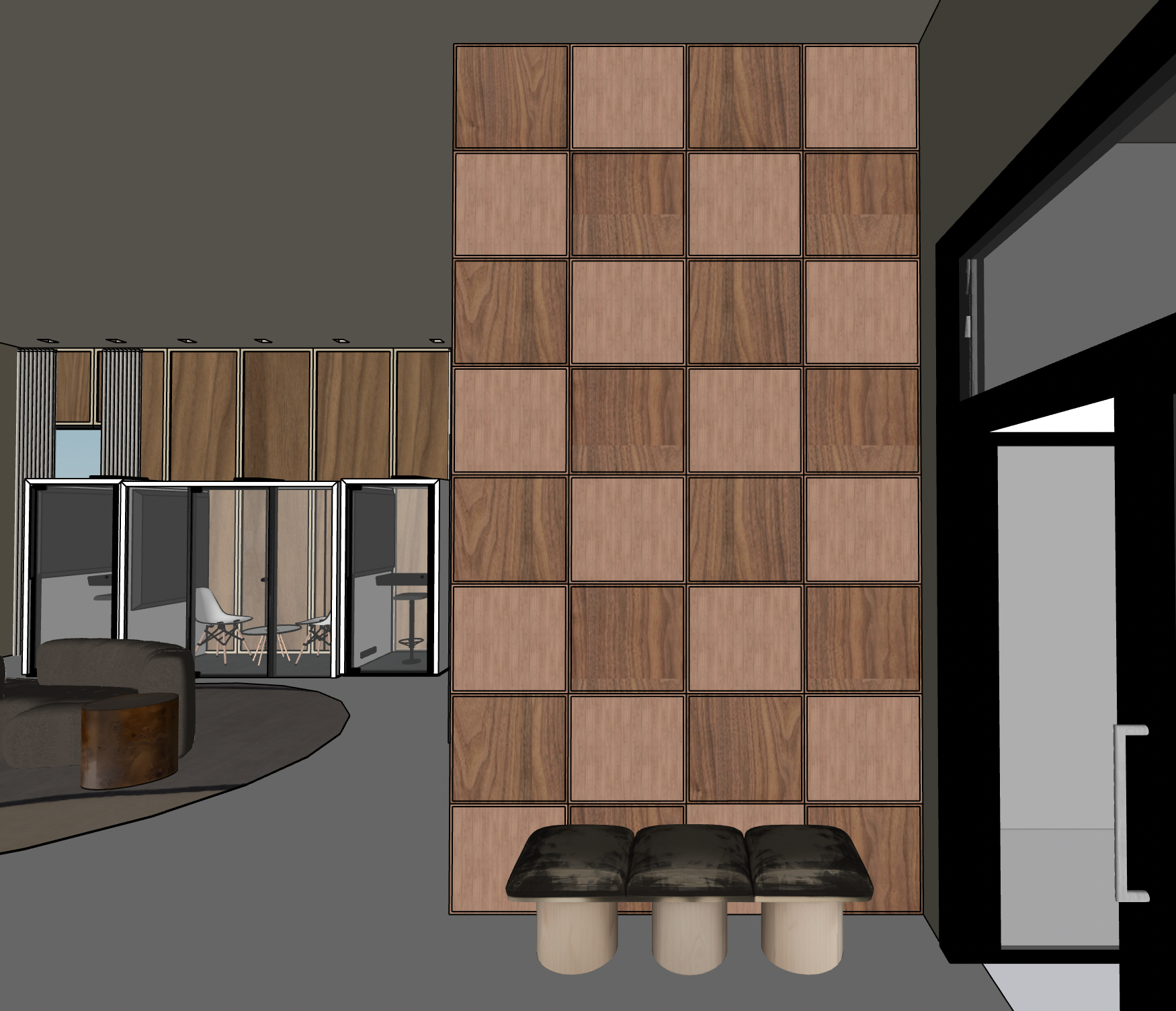 concrete floors under the rug add natural light from the left and light from recessed lights