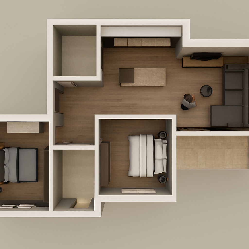 important preserve the existing geometry and the existing context exactly as provided do not modify alter reinterpret add remove scale or reshape any geometry do not change the site surroundings or context elements do not modify geometry scale proportions buildings road layout sidewalks or surrounding context in any way do not modify text cool and bright interior lighting realistic light falloff photorealistic architectural rendering clean and balanced contrast calm cinematic mood style contemporary european residential architecture minimalist premium understated keep a cool black white and grey atmosphere