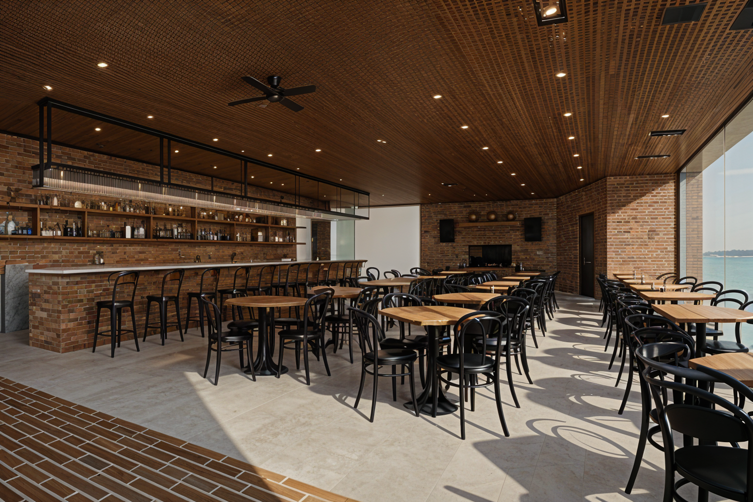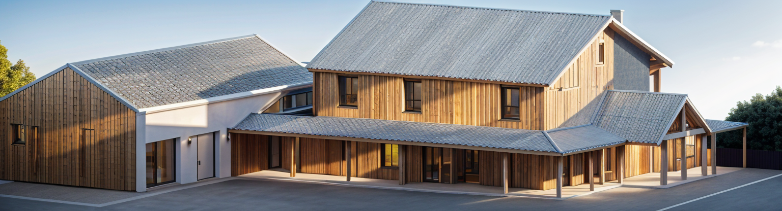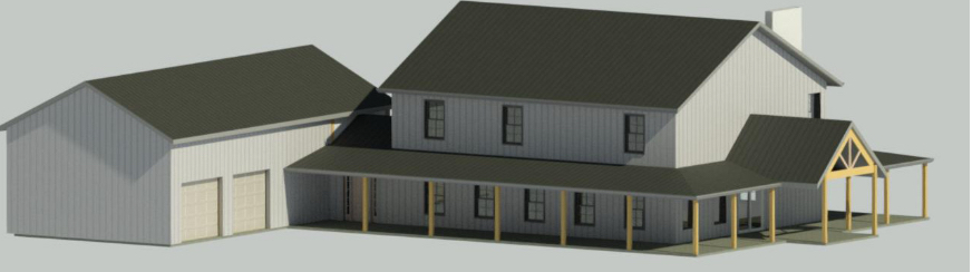 modernist exterior shot a modern farmhouse with a wraparound porch featuring black vertical siding and a black metal roof the windows are framed in black providing a sleek contrast the columns are warm natural wood the setting is serene with a soft overcast sky the atmosphere is cozy and inviting with subtle shadows and highlights emphasizing the architectural details architecture