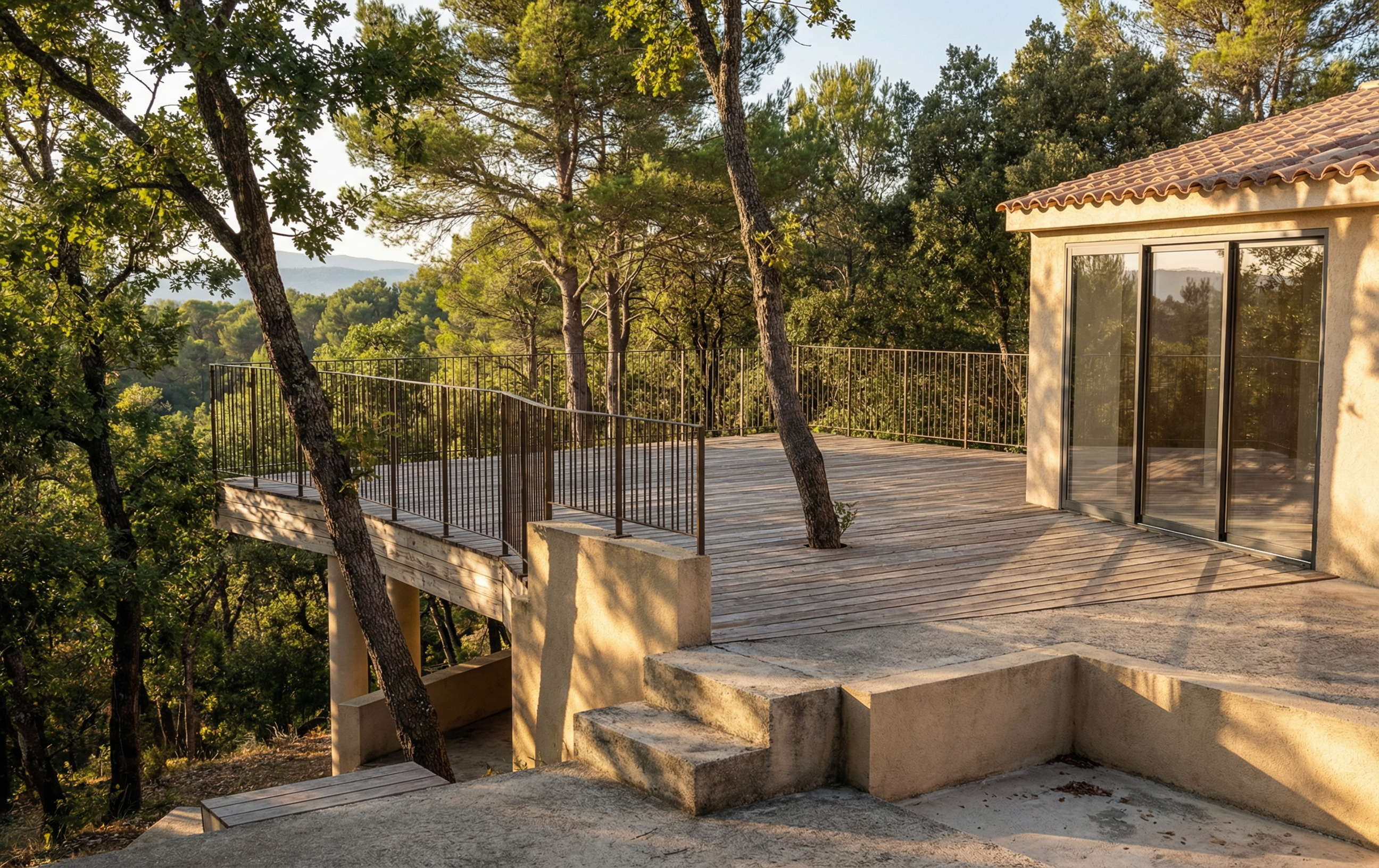 erstelle einen sch nen garten das haus steht auf 4 meter hohen st tzen