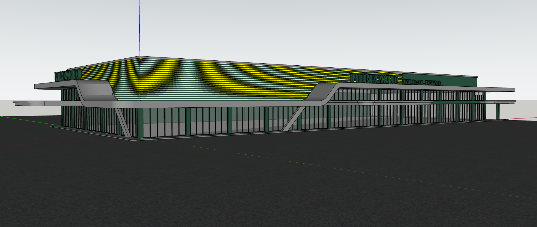 use nano banana pro give me a realistic architectural visualization of this new commercial building in the philippines maintain the geometry and shape of the building do not remove anyhting enhance the materials add site context architectural photography