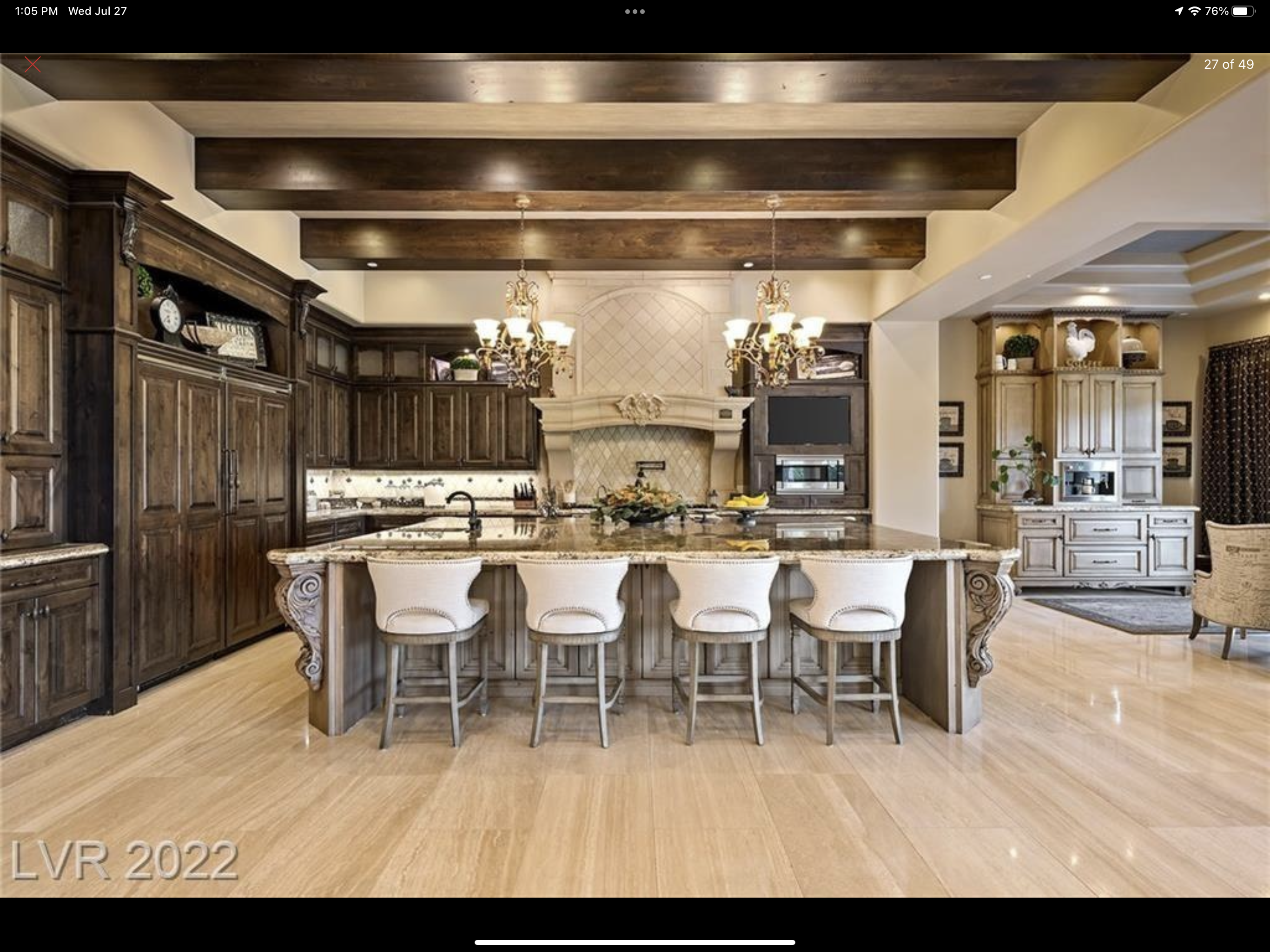 redesign the kitchen island to have a modern waterfall edge on both sides keep everything the same