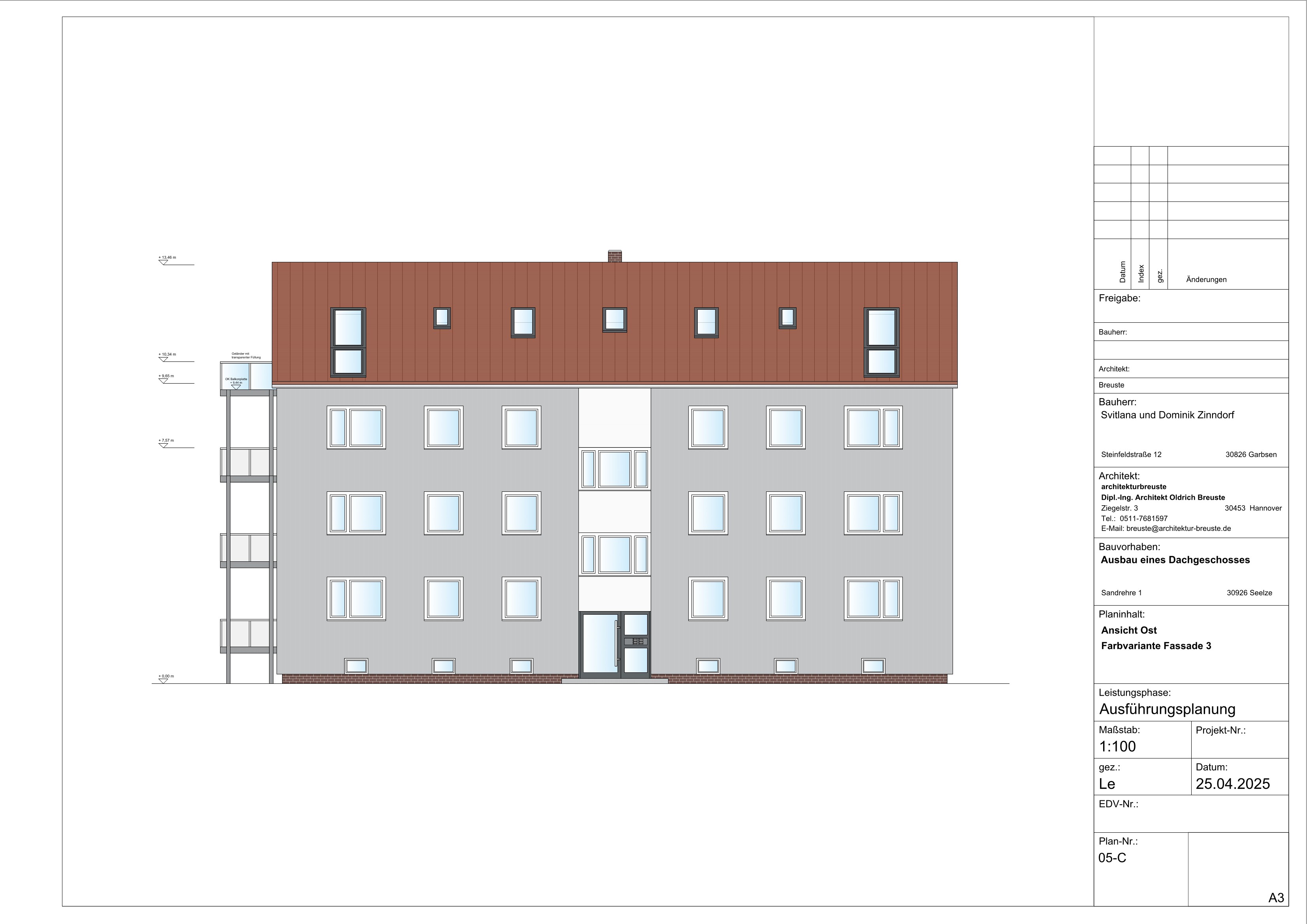 roof terracotta facade left and right lightgrey only in the middle exactly above the entrance door white