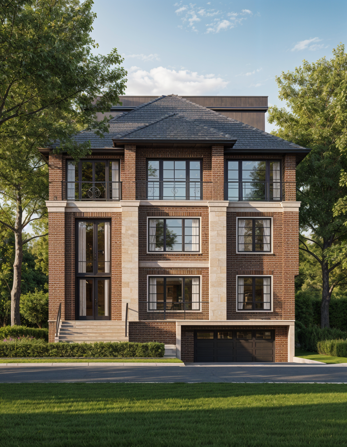 show brick at the bottom half and limestone at the top part