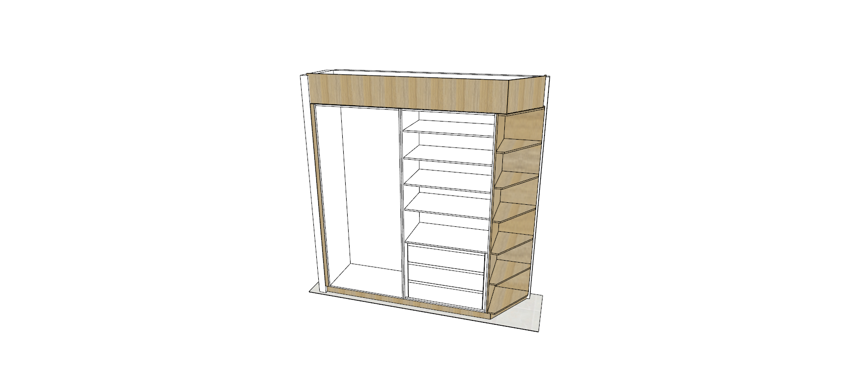 put two sliding oak doors on the white boxes so you cant see the drawers doors to have a small black perimeter