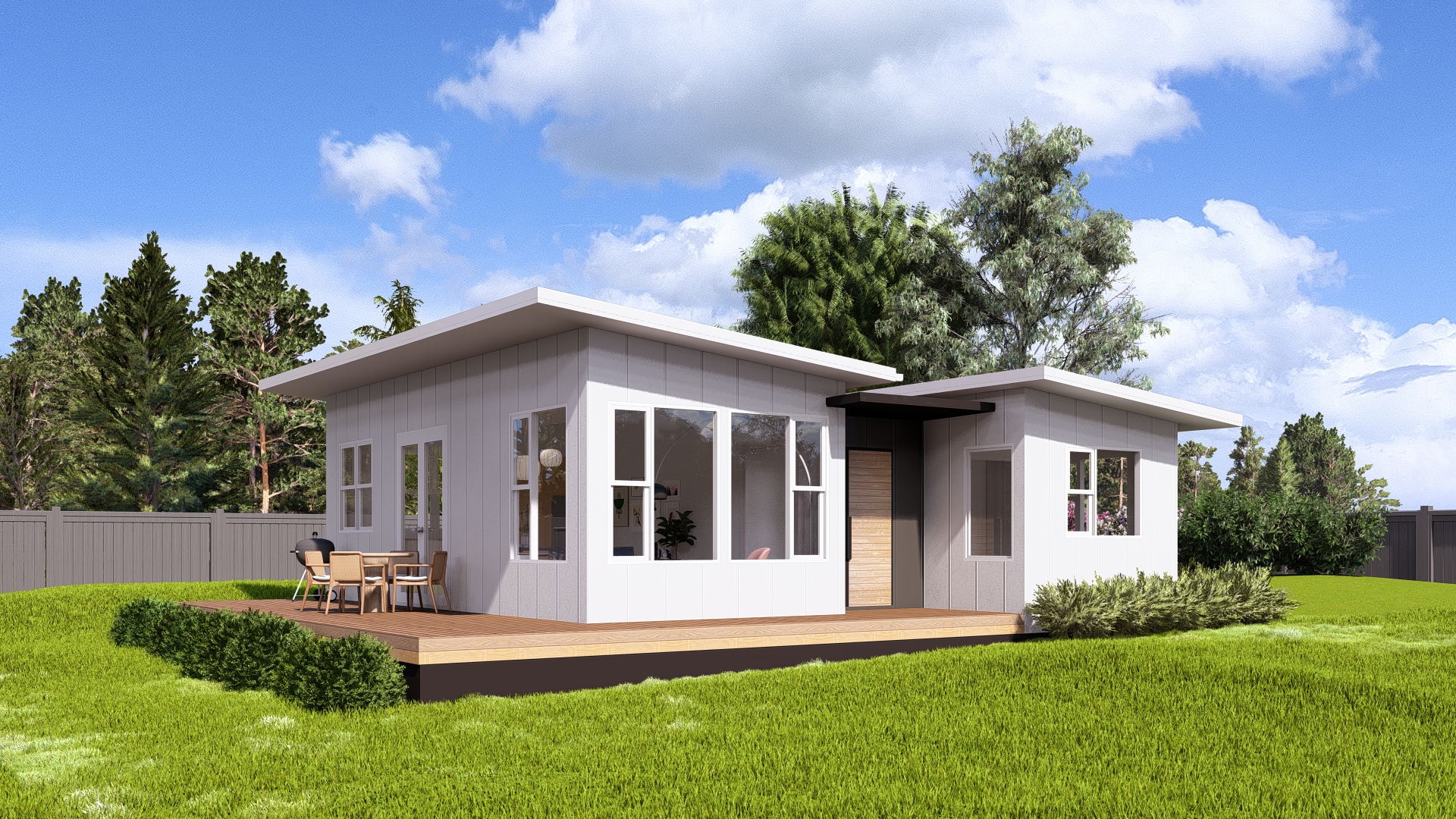 this is a granny flat featuring standing seam cladding