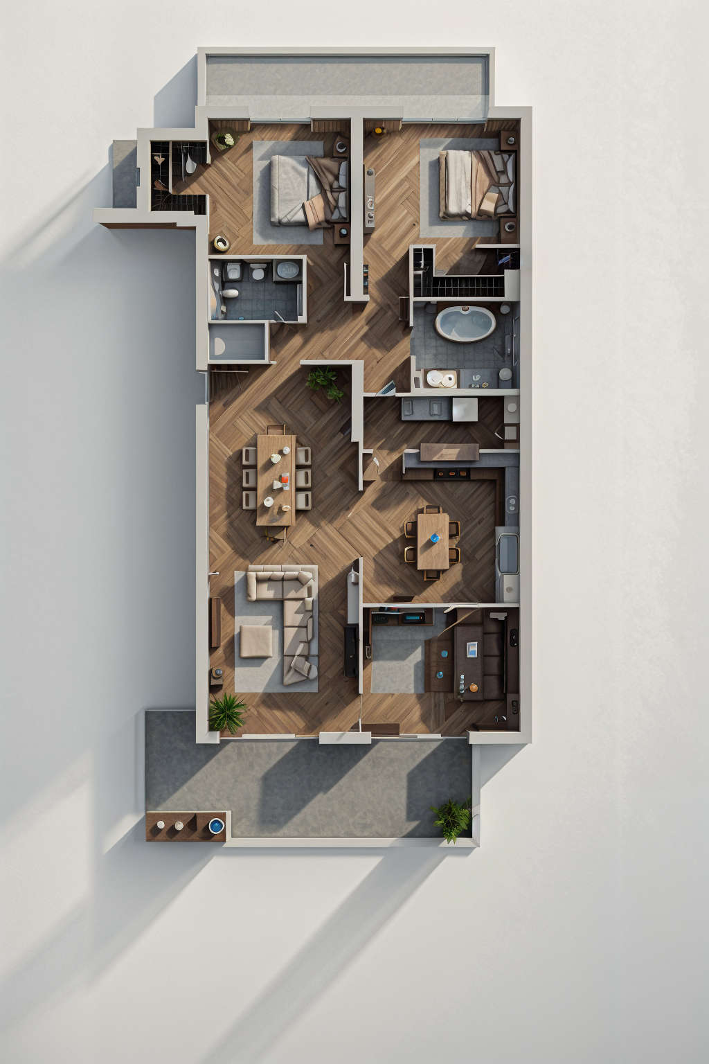 convert this floor plan into a realistic isometric 3d view of a full house show the space from an elevated angle with furniture walls and details visible mantieni la planimetria con gli arredi cosi come disegnati colora solo use the same furniture as shows on the plan do not change the orientation of the floorplan