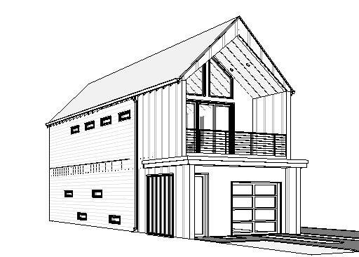 exterior shot sunset background neighborhood landscaping vertical corrugated metal wood horizontal siding