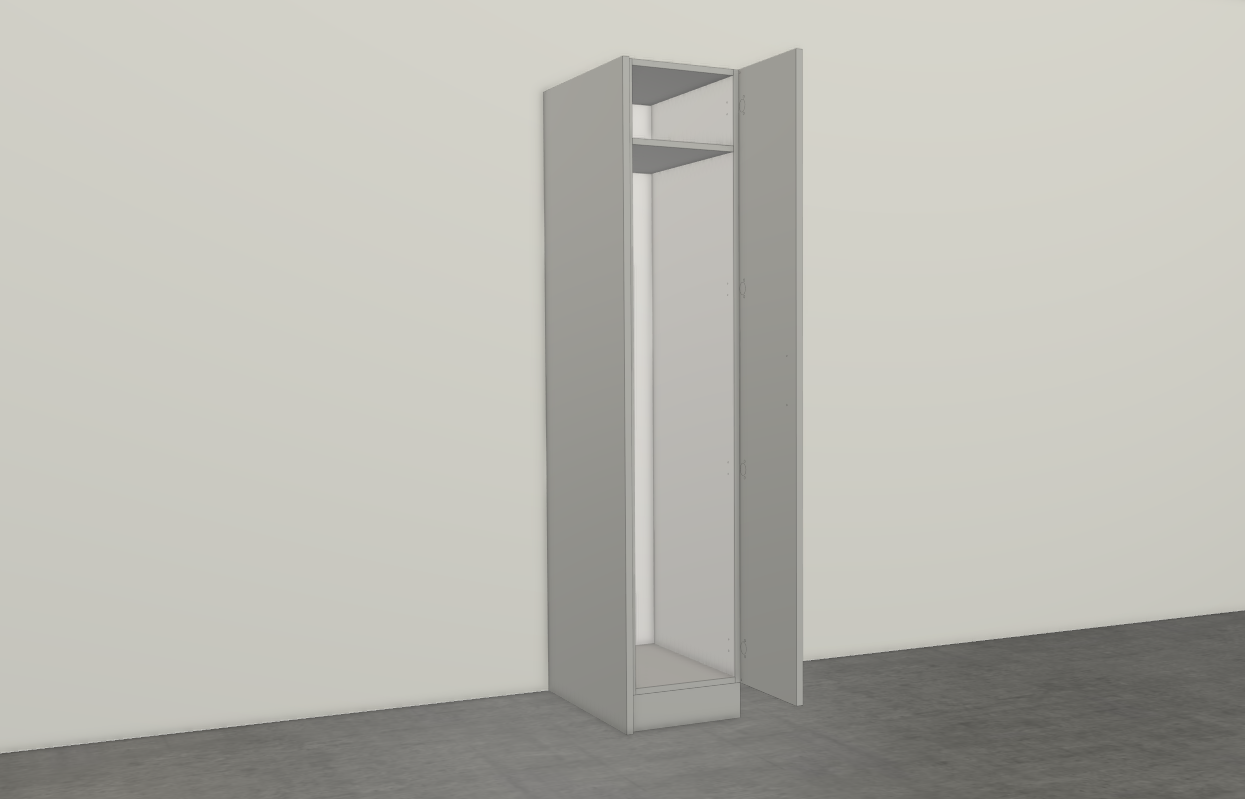 put cabinets above and to the right place fridge on the left