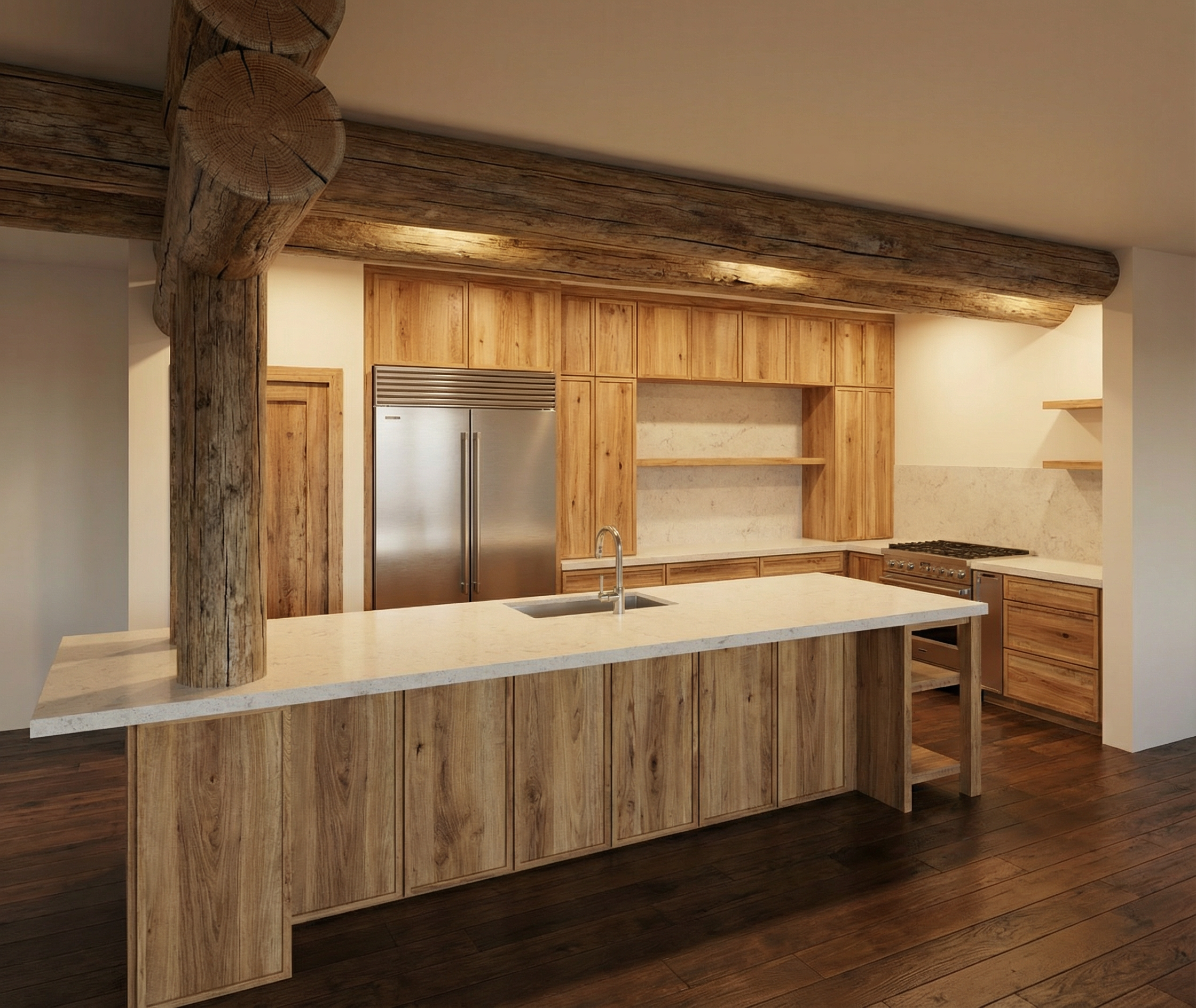 keep everything as is add wood countertop across sink area only add cabinet hardaware