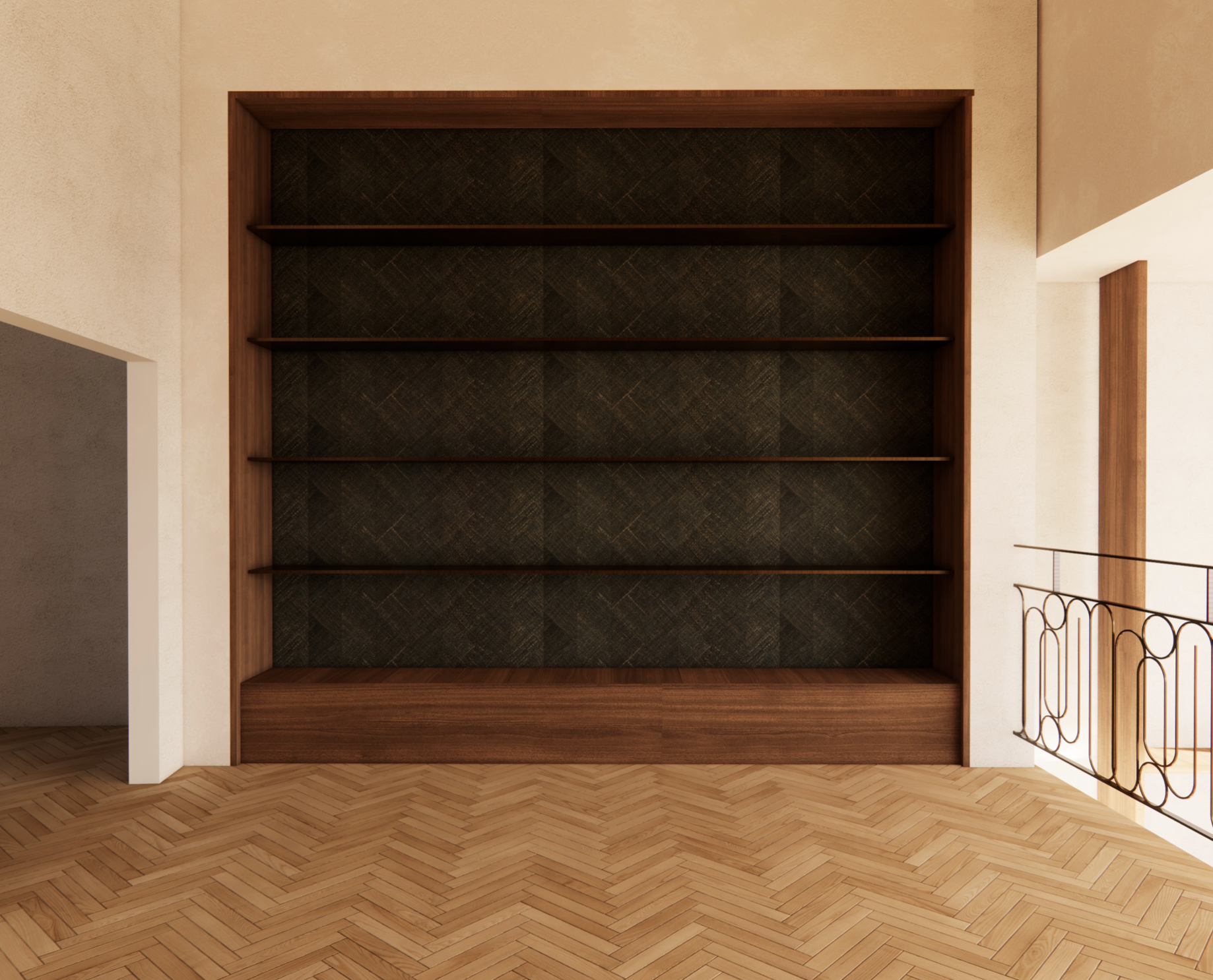 beschrijving het huidige ontwerp moet volledig behouden blijven geen wijzigingen aan vorm materialen of kleuren ik wil enkel een realistischere render van de bestaande sc ne met verbeterde belichting schaduwen en textuurdetails zodat het beeld natuurlijker en levensechter oogt daarnaast wil ik onder elk bronzen schap subtiele led verlichting die het behang op de achterwand mooi en gelijkmatig uitlicht