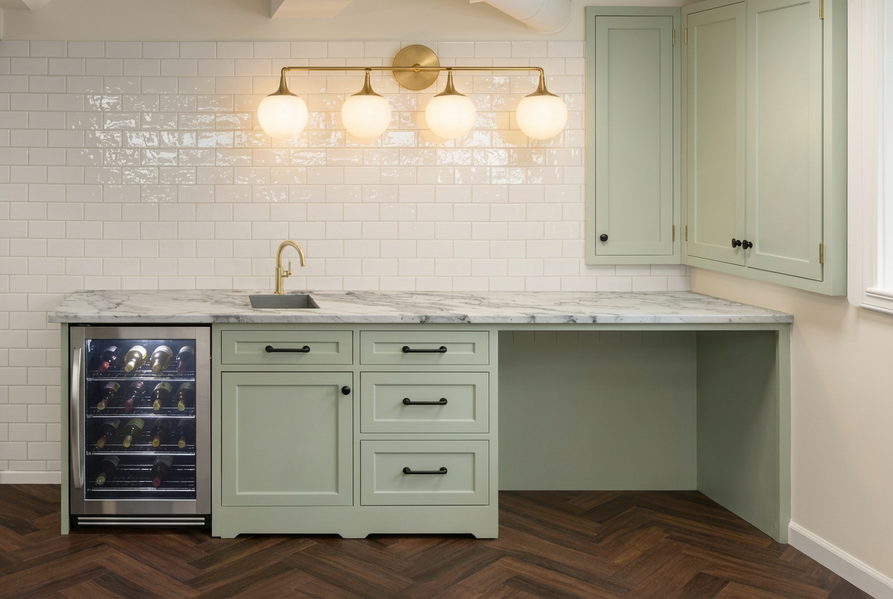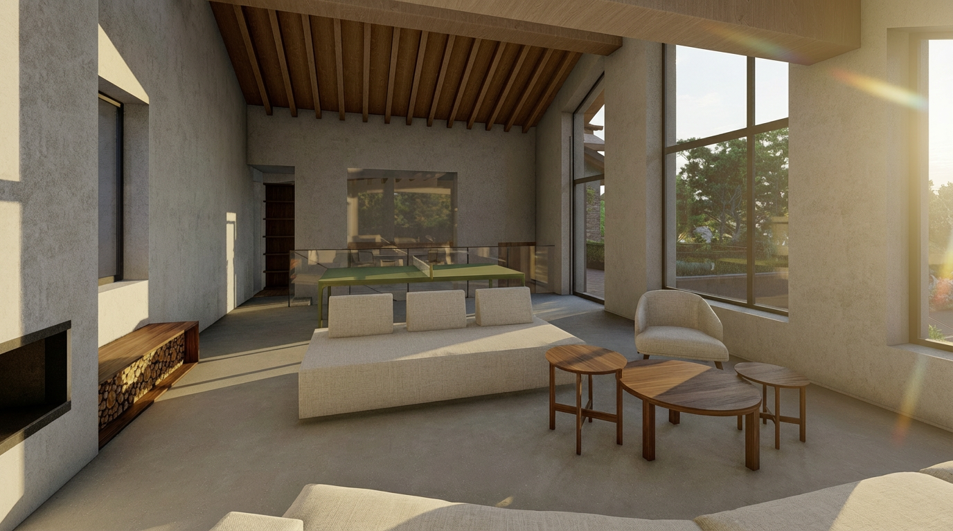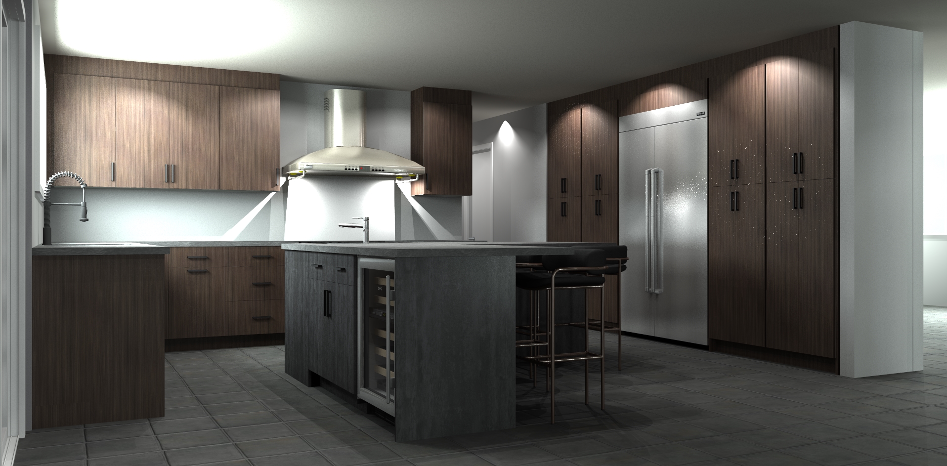 maintain original structure but give the render an industrial luxury loft vibe add concrete full height backsplash