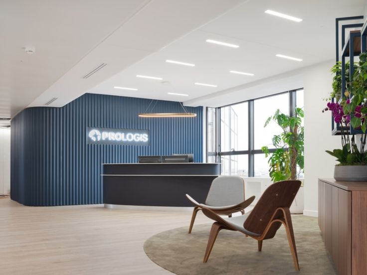 interior shot a modern interior space featuring a minimalist design with a soothing atmosphere the focal point is a vibrant deep blue accent wall enriched with textures adjacent is a lush vertical garden with various shades of green adding a touch of nature the flooring is a polished marble with white and gray veining a sleek light gray chair is placed on a simple white platform beside a small elegant marble table the space is enclosed with light wooden framed glass partitions soft ambient lighting enhances the tranquil and inviting feel