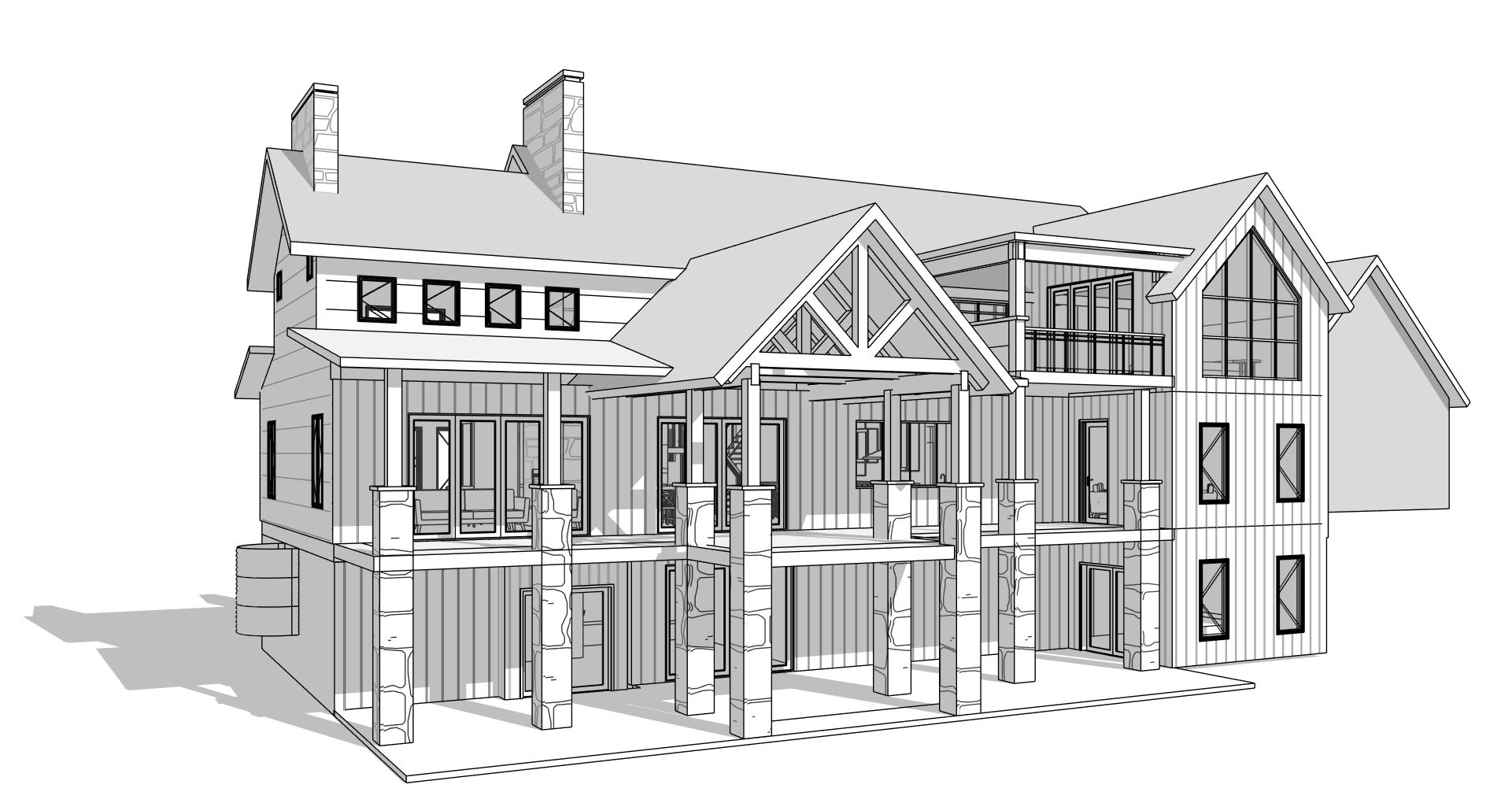 modern farmhouse look with black siding white brick and stone asphalt shingles on the roof